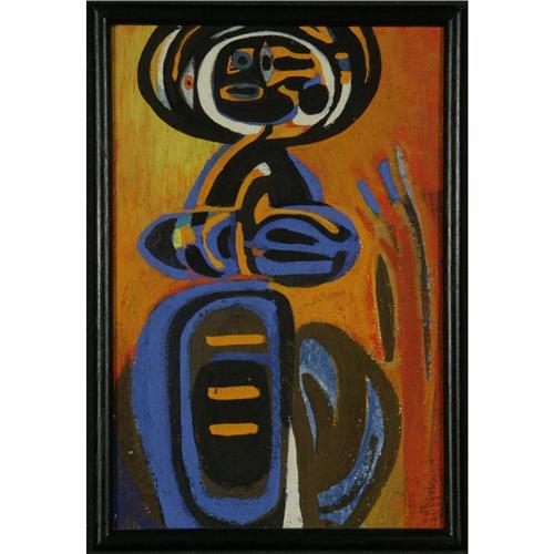 TEMPERA ON PANEL 17.5'' x 11.5'', Margaret Peterson (1902-1997), CA. ''Untitled''. Signed lower right. Paper label from the Art Gallery of Greater Victoria on the verso. Placed in a black wood frame.