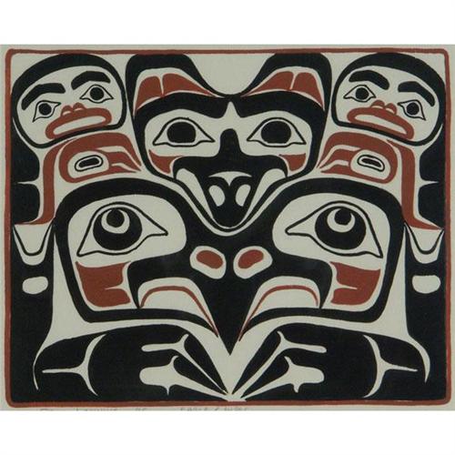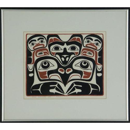 TEMPERA ON PAPER 9.25'' x 11.25'', Odin Lonning (20/21st century), WA. ''Eagle/Wolf''. Signed and dated ''85'' lower left. Titled lower center. Matted and placed in a silver metal frame. More info. in the white binder.