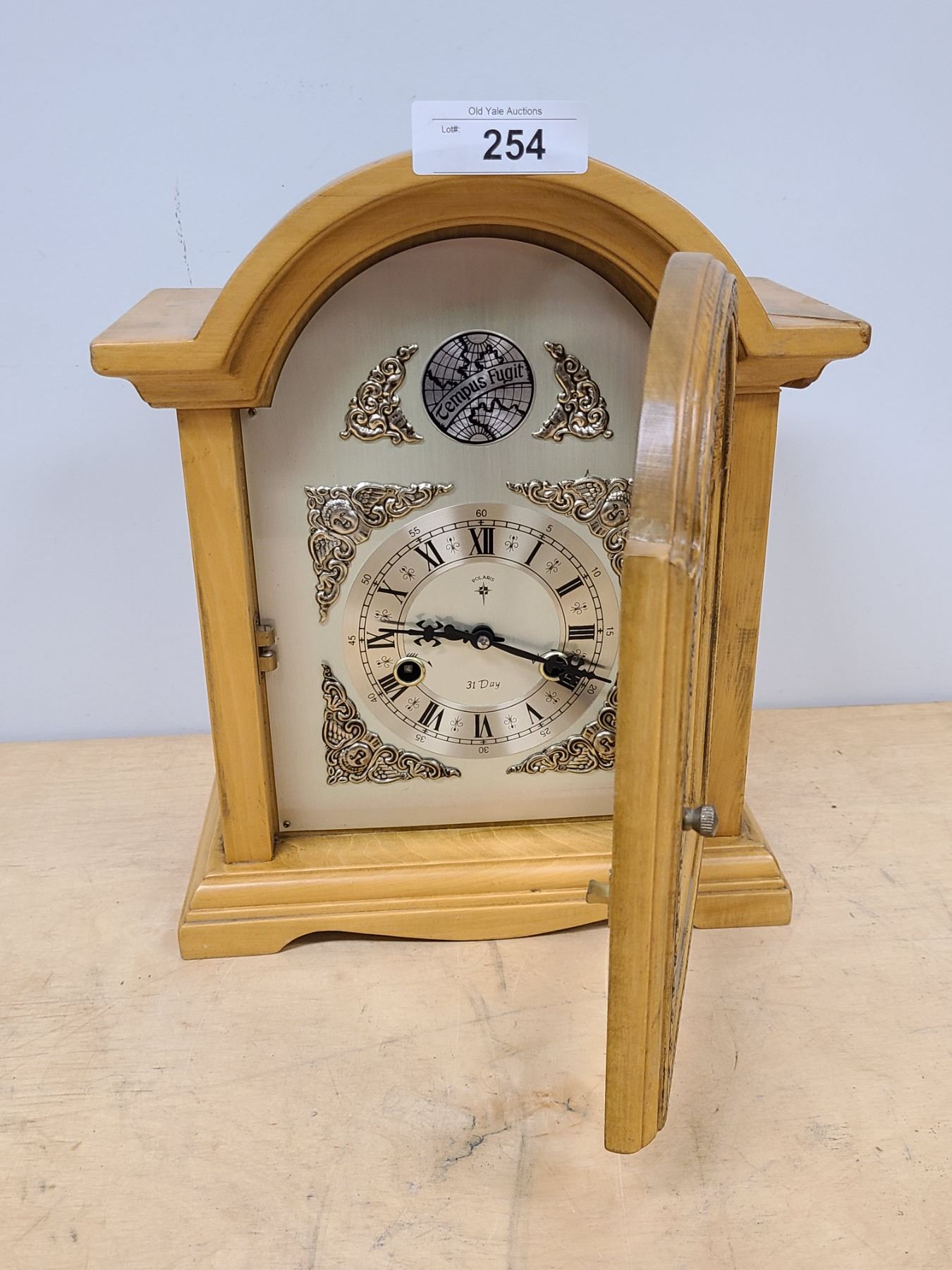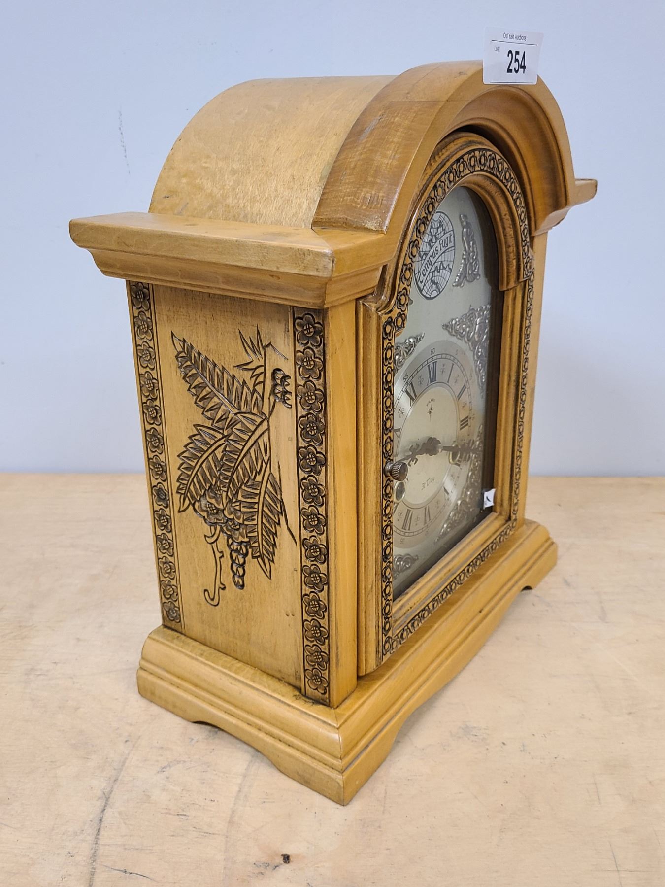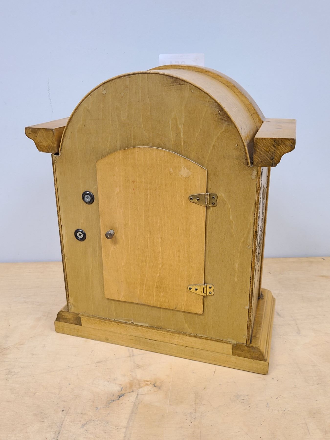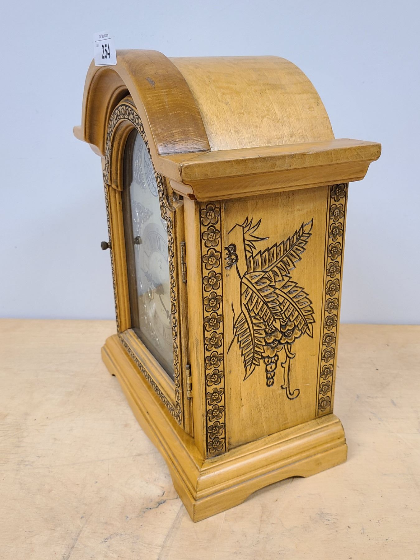 HAS PENDULUM BUT NO KEY, NICELY DETAILED CARVINGS ON EACH SIDE