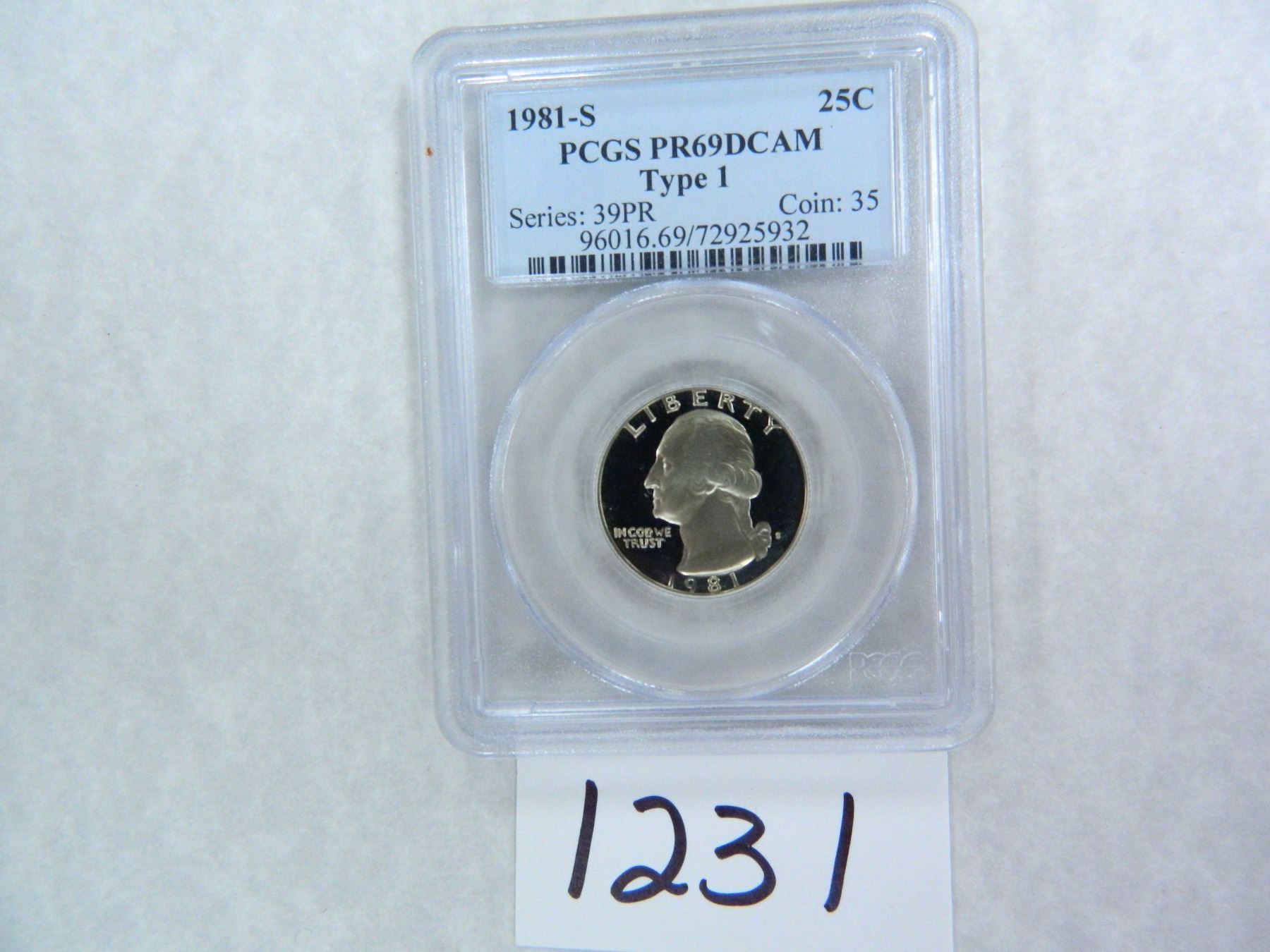 TEN (10) 1981-S TYPE 1 Washington Quarter PCGS Graded PR69 DC