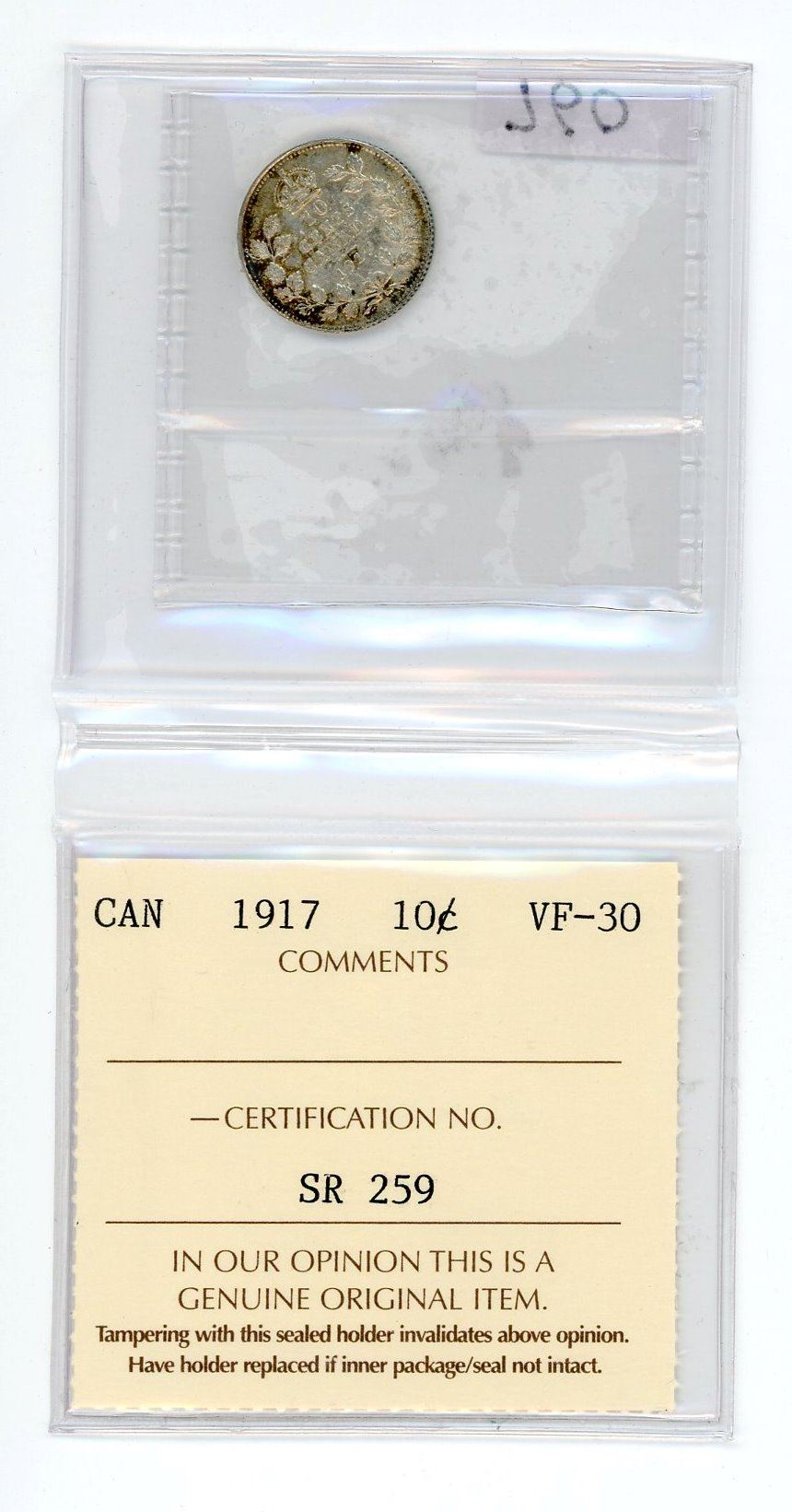 TEN CENT COIN (CANADA) *1917* (ICCS-VF-30) *SILVER*