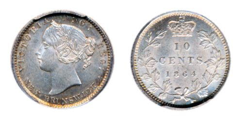 TEN CENTS. 1864. PCGS graded Mint State-62. A well struck, fully lustrous and rare brilliant example.