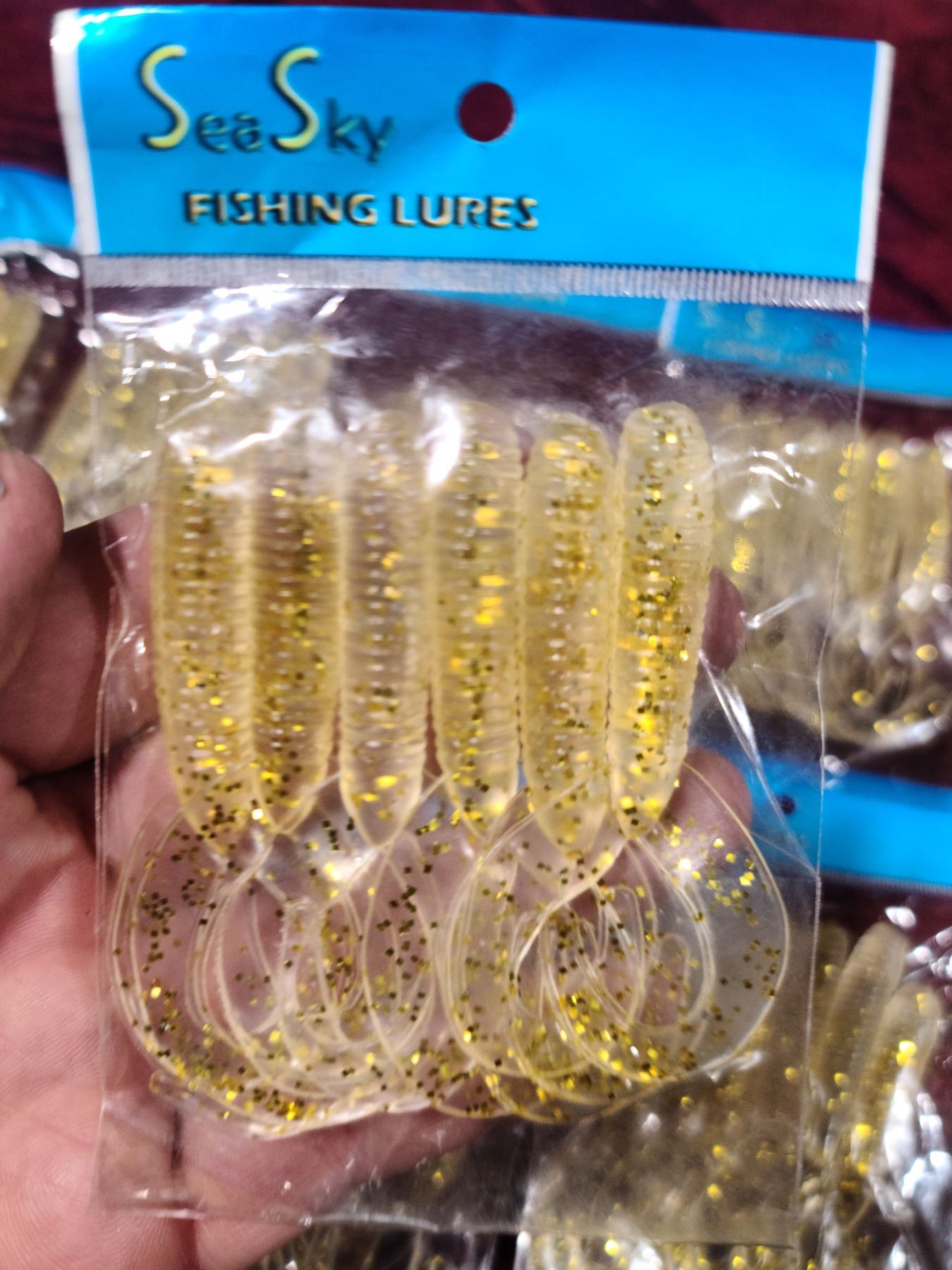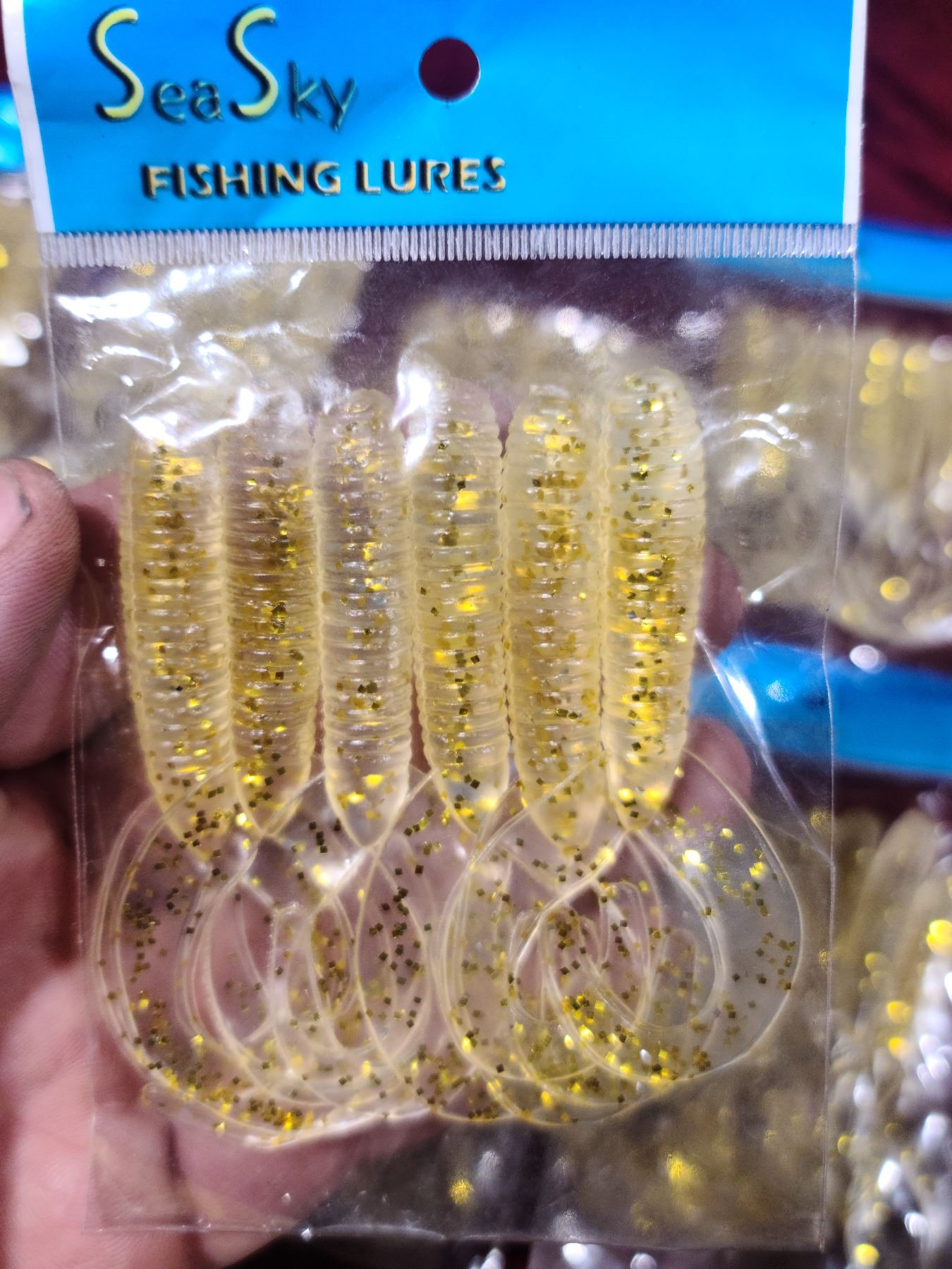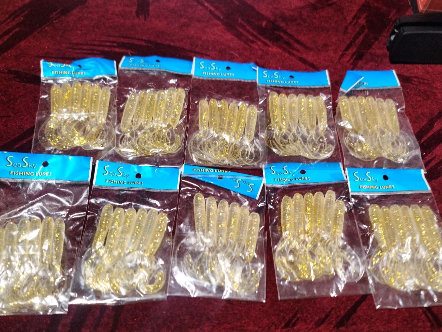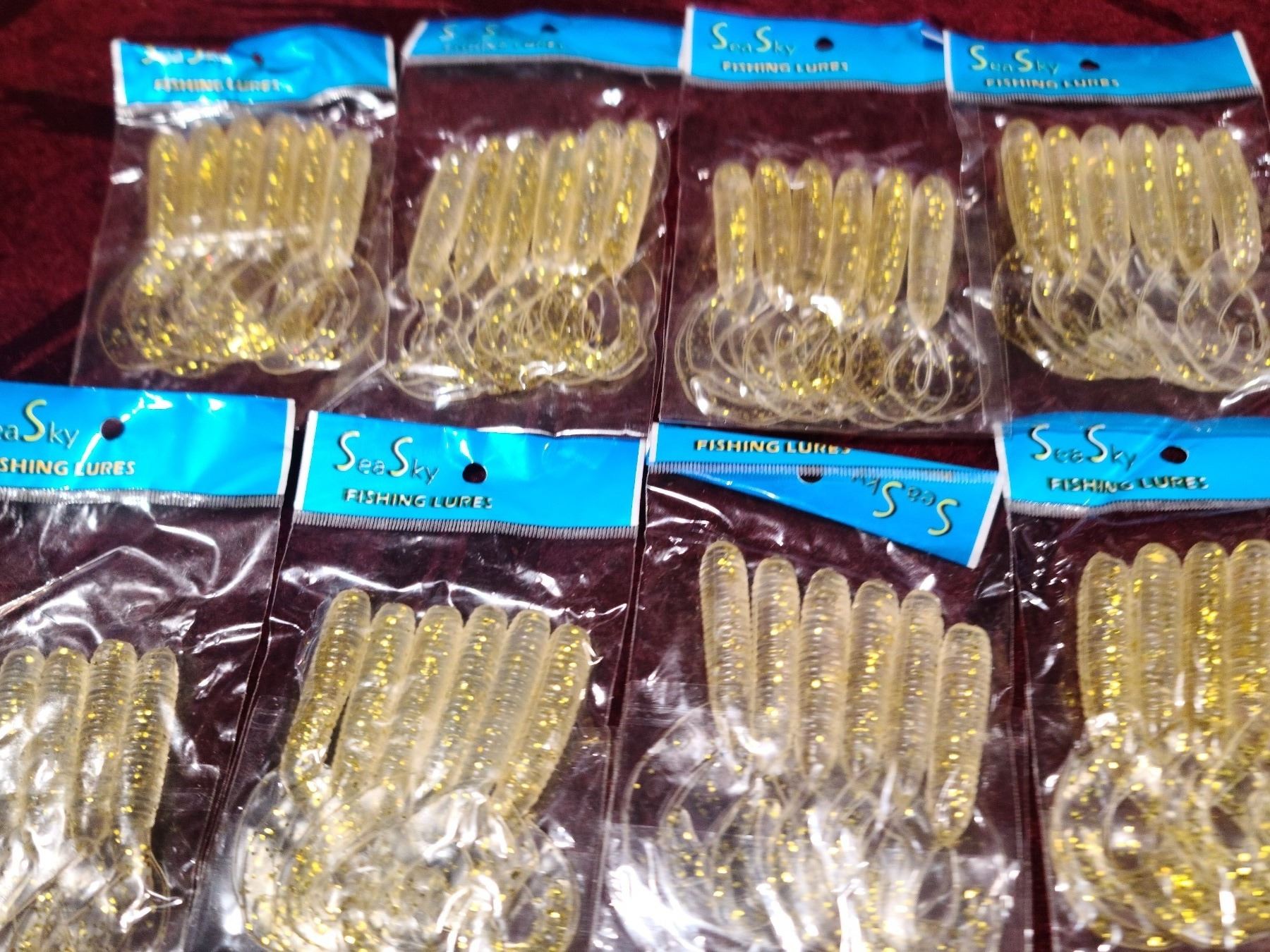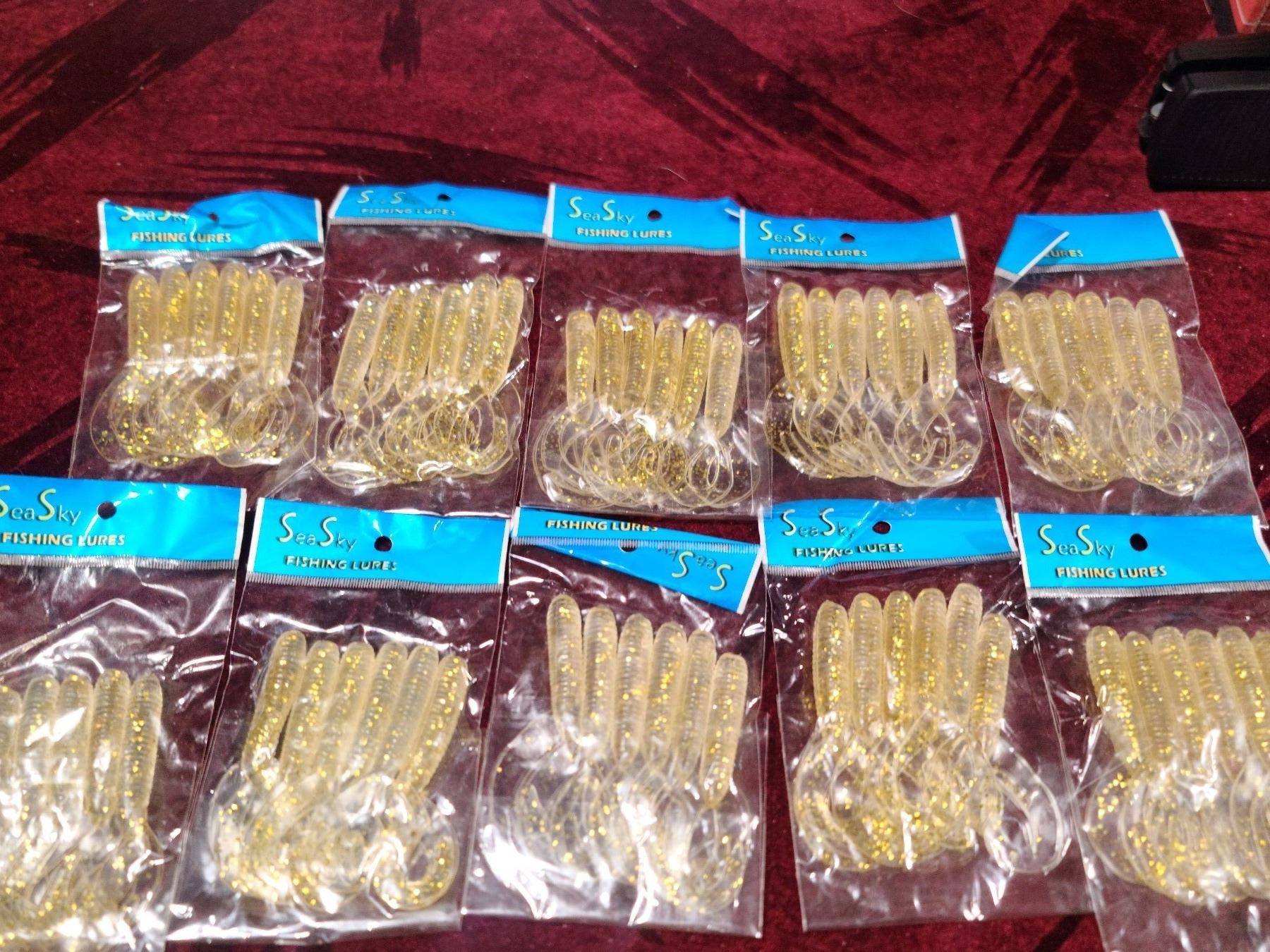 TEN PACKS OF SIX RUBBER FLAT TAIL WORMS - BAIT