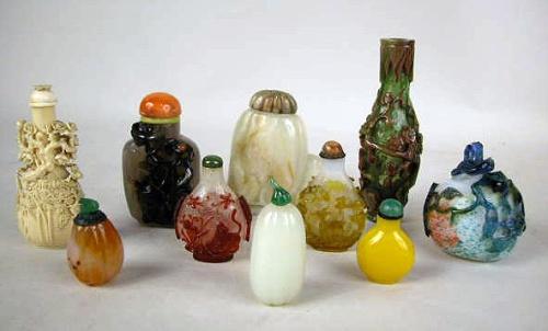 TEN SNUFF BOTTLES OF VARIOUS MEDIUMS; (losses)