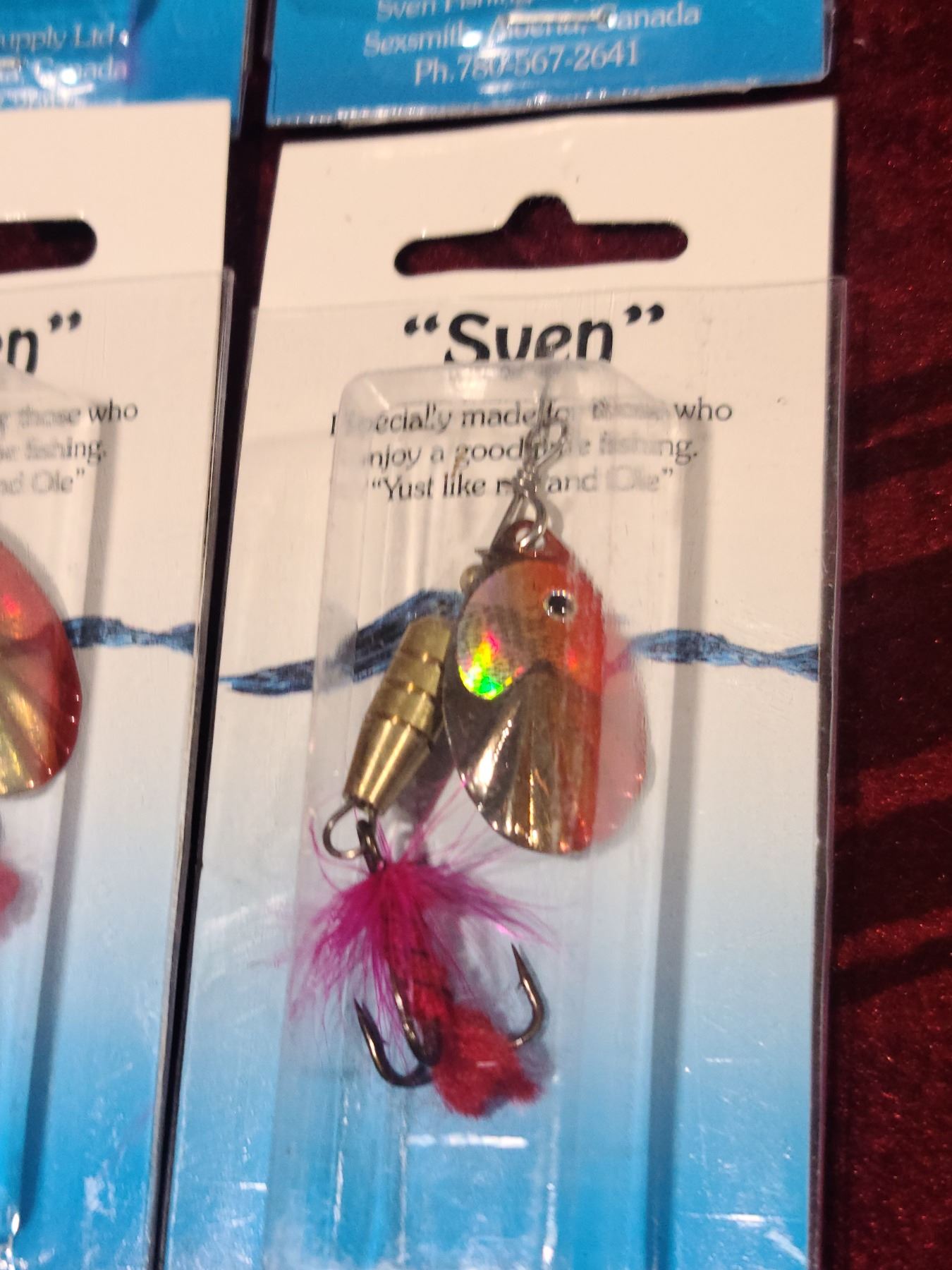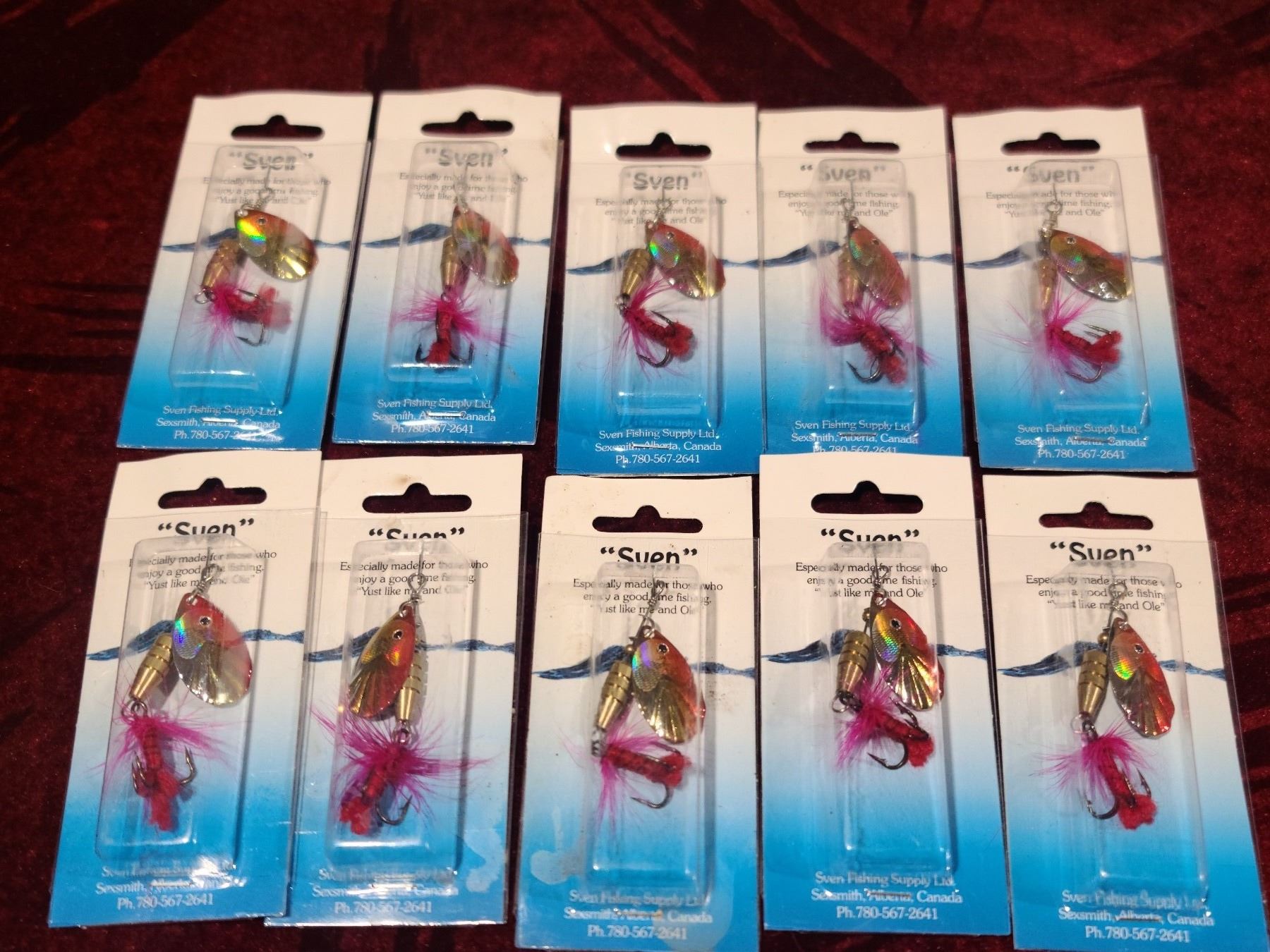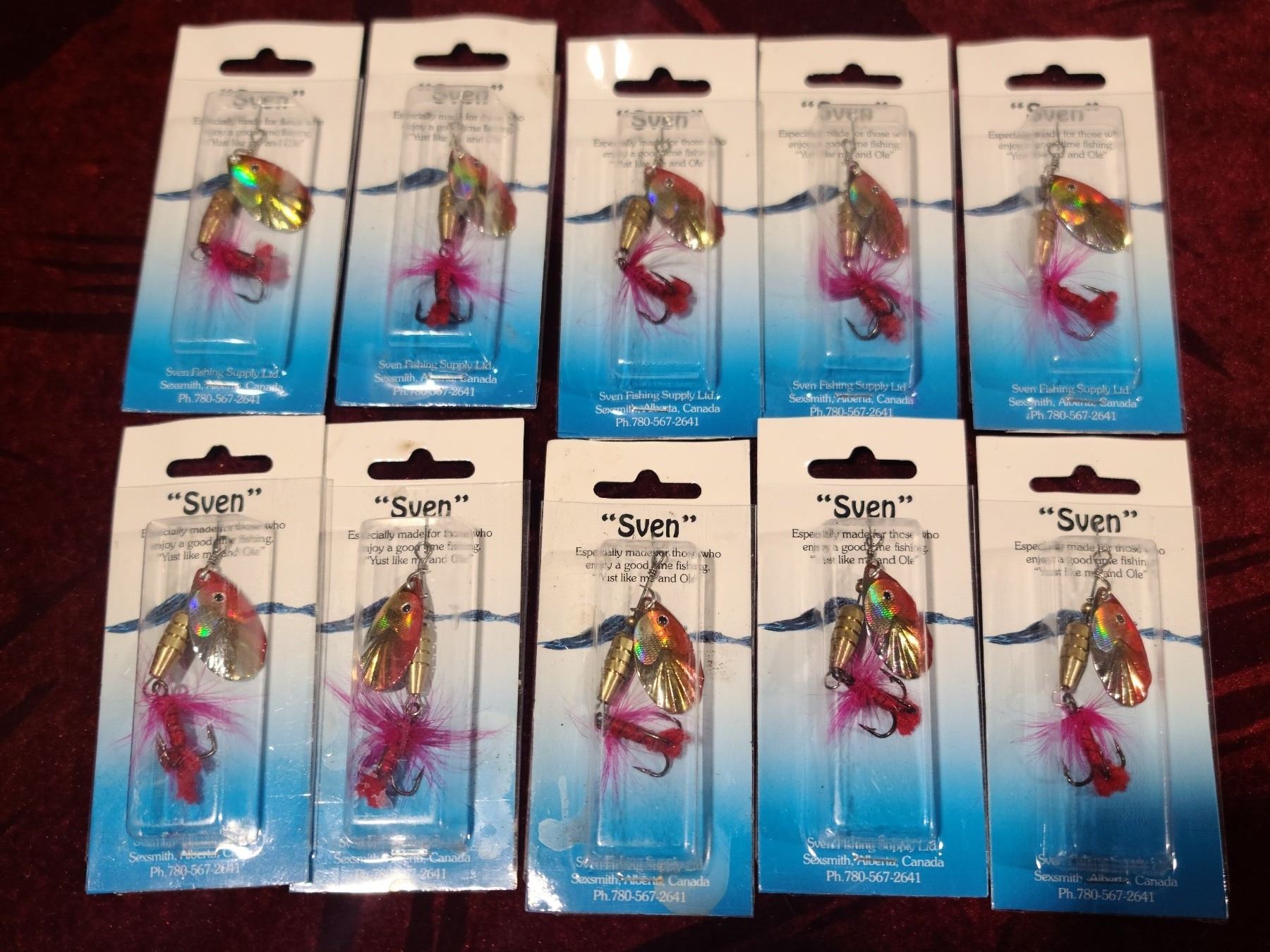 TEN SVEN RED, GOLD AND SILVER TREBLE HOOK SPINNERS WITH FLY STYLE ON HOOK