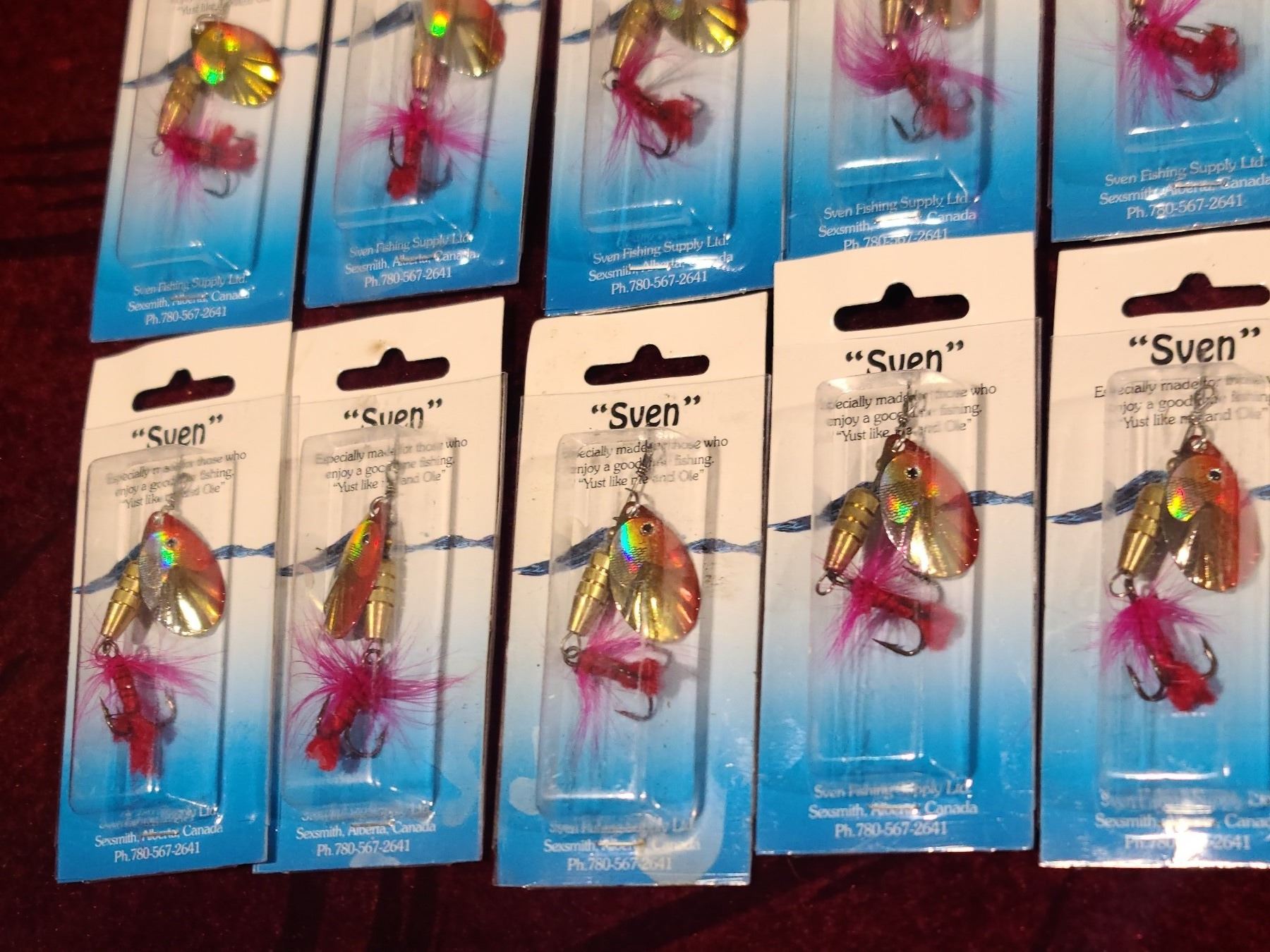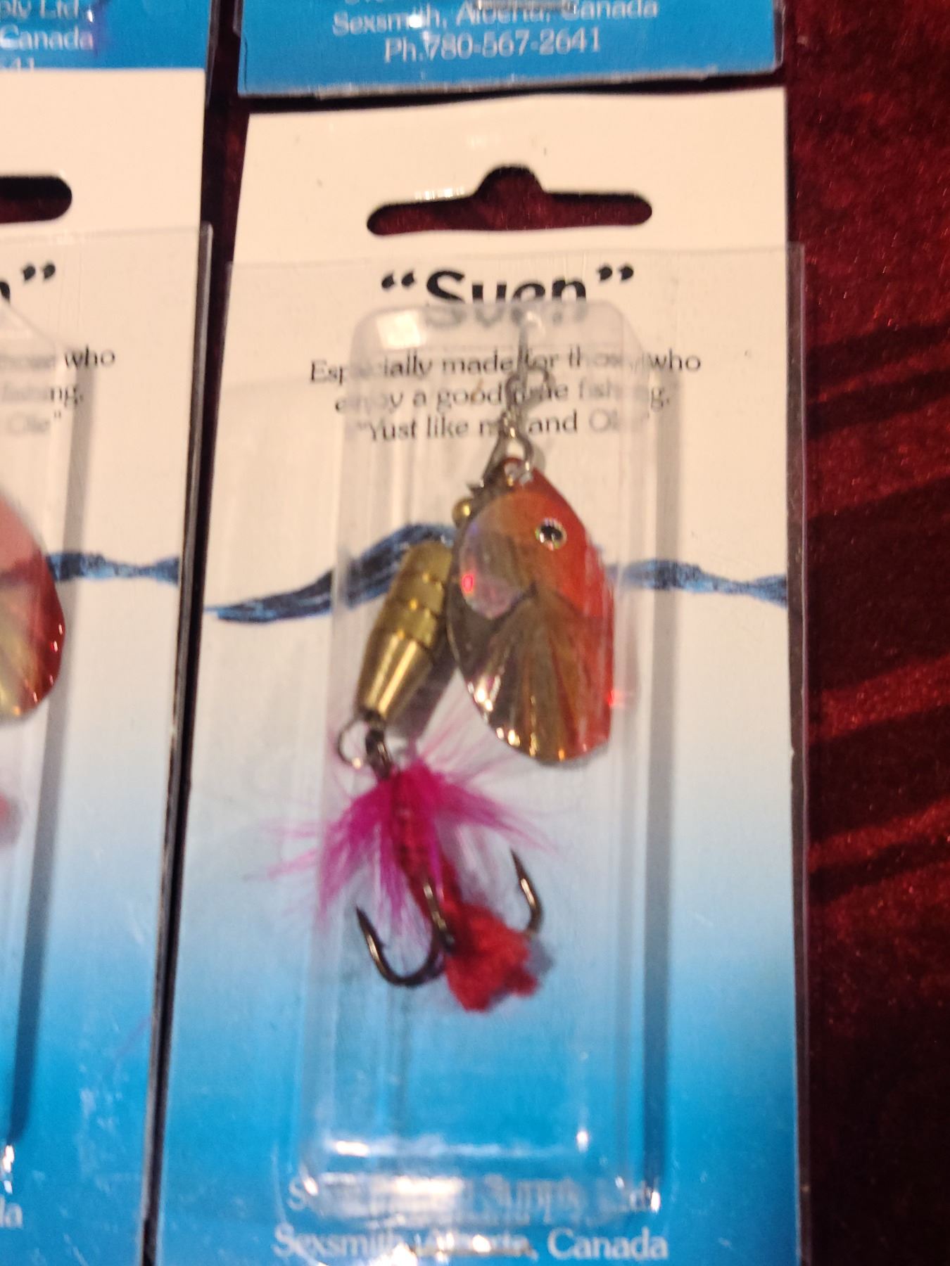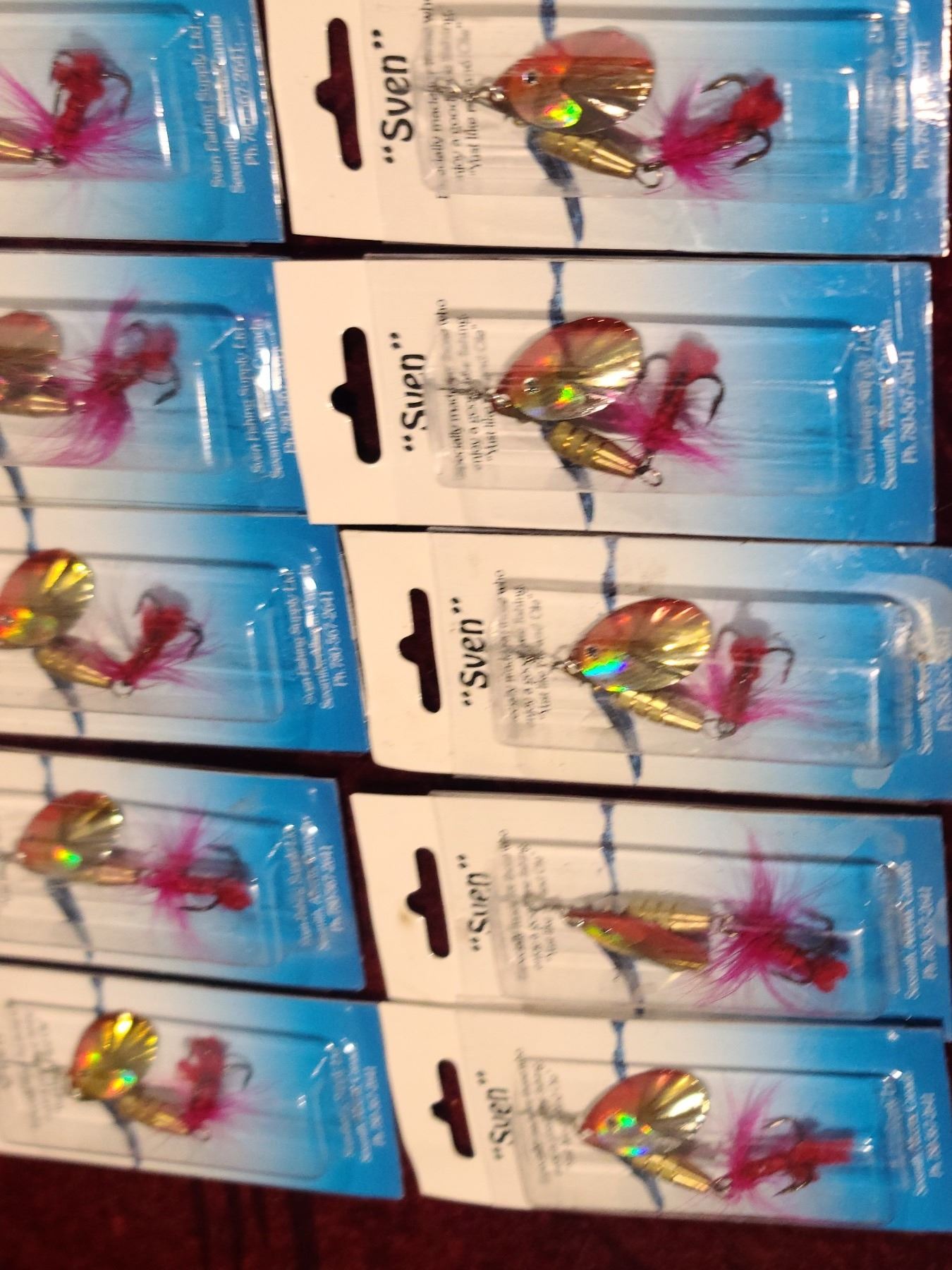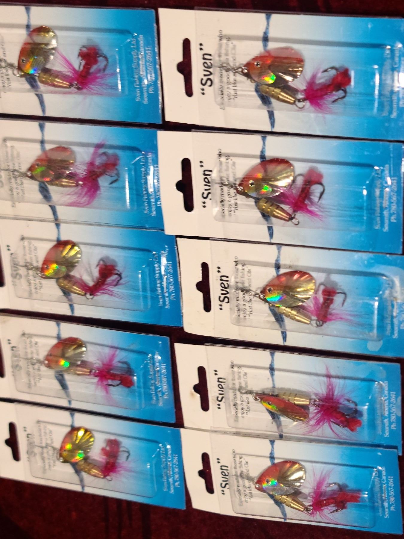 TEN SVEN RED, GOLD AND SILVER TREBLE HOOK SPINNERS WITH FLY STYLE ON HOOK