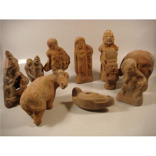 Possibly Ancient Roman Greek terracotta Ten figures Of Oil Lamp ,Bes ,Female, harpokrates and More