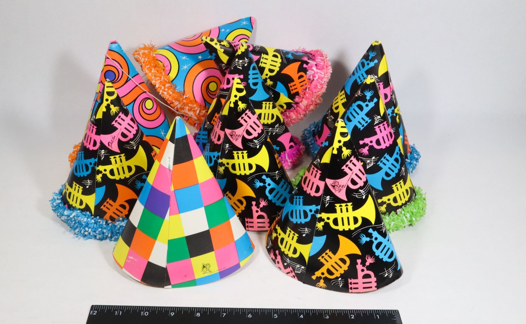 TEN VINTAGE PARTY HATS 60S NEW UNUSED