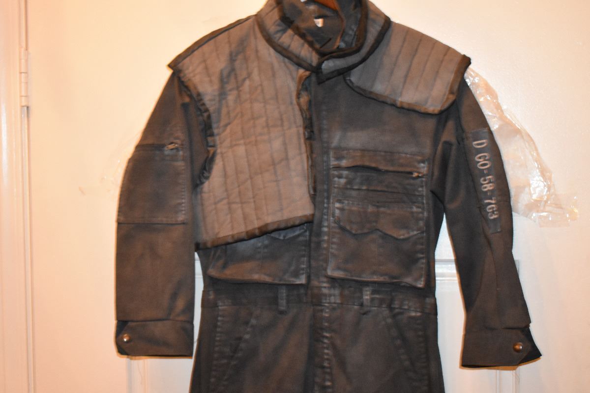 Shows dirt and distress. Unfortunately the Serial Number patch on the pocket is lost but the one on the arm is there which is a point of possible Screen Match. There is also double sided tape along the lapel there to hold it closed.