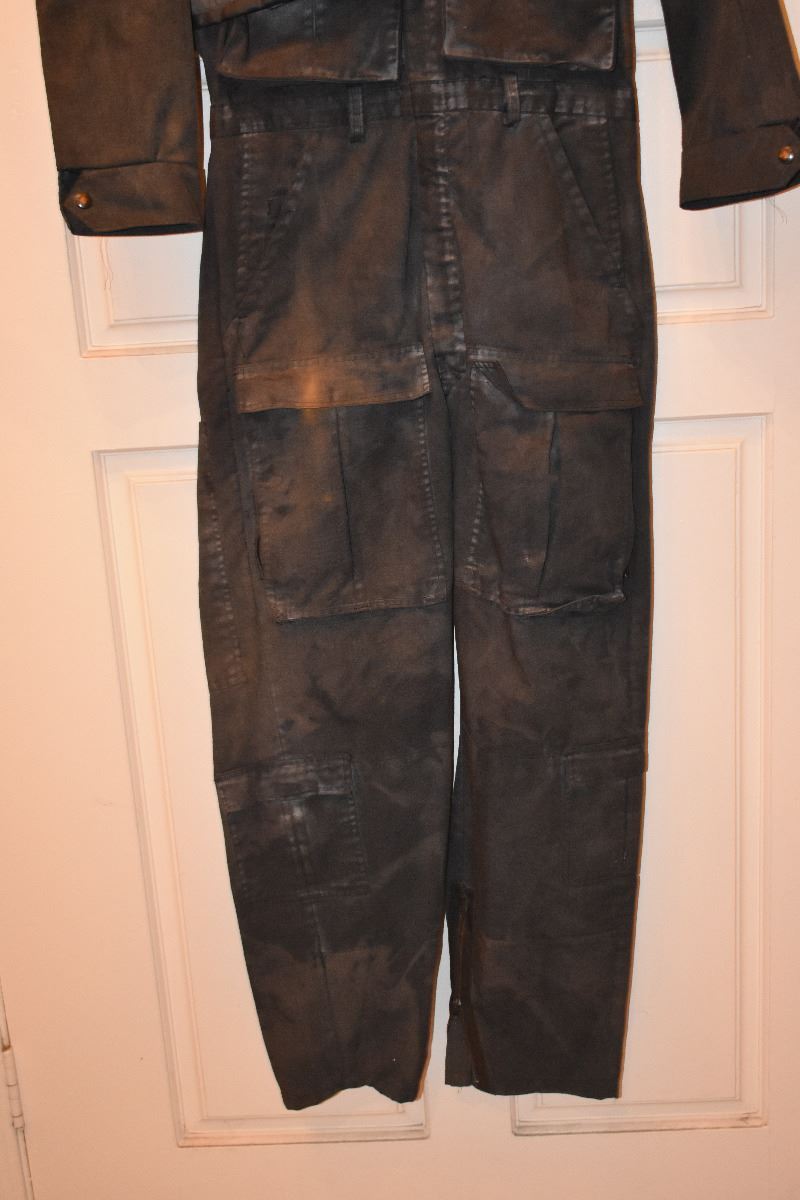 Shows dirt and distress. Unfortunately the Serial Number patch on the pocket is lost but the one on the arm is there which is a point of possible Screen Match. There is also double sided tape along the lapel there to hold it closed.