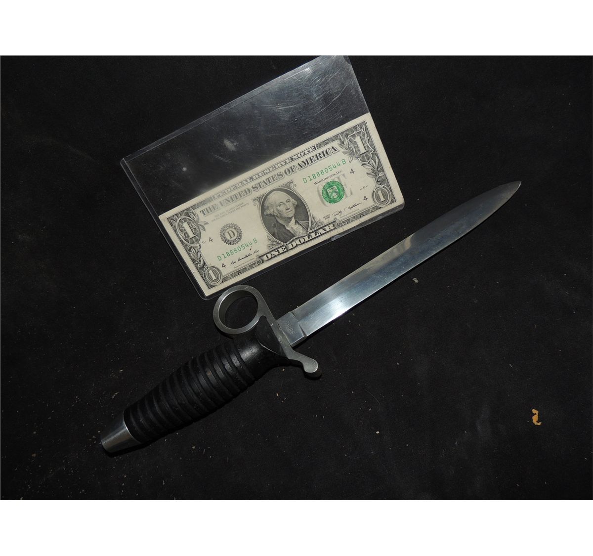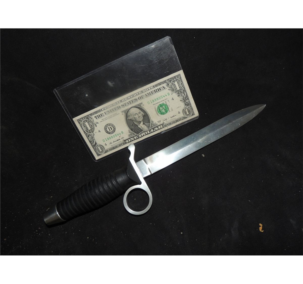 This one knife was used as the complete Hero and the impaled pallet version. This was accomplished because the blade removes from the handle to allow the different versions to be inserted. This also weighs a fraction of what a real knife would.