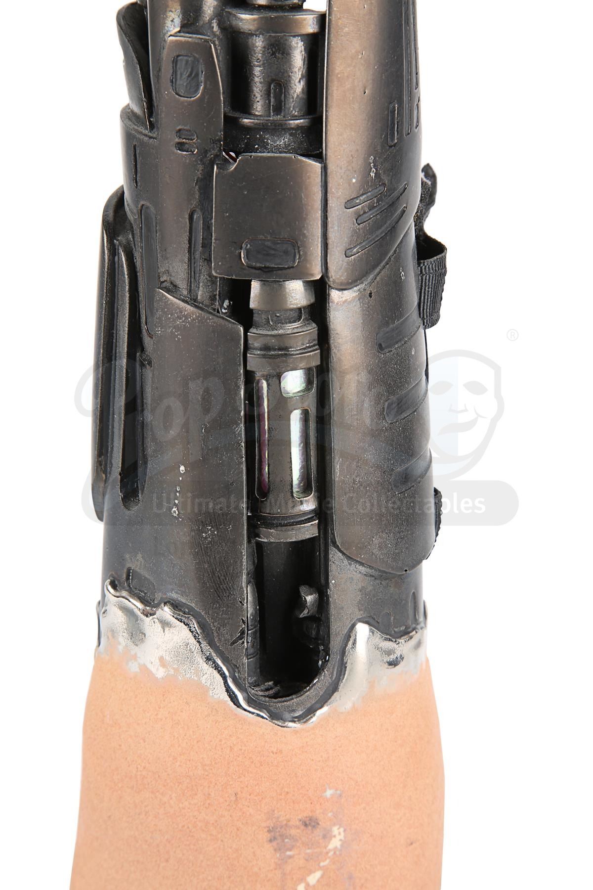 The T-X's (Kristanna Loken) special effects arm from Jonathan Mostow's sci-fi action sequel Terminator 3: Rise of the Machines. The T-X damaged her arm when she was ripped from the roof of a hearse driven by the Terminator (Arnold Schwarzenegger), who purposely drove under a truck to stop her pursuit.