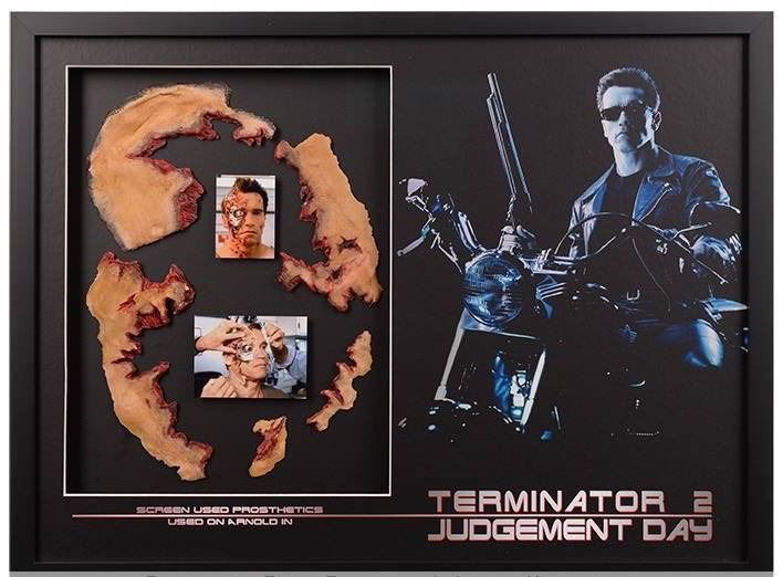 framed T2 Arnold prosthetic parts makeup display