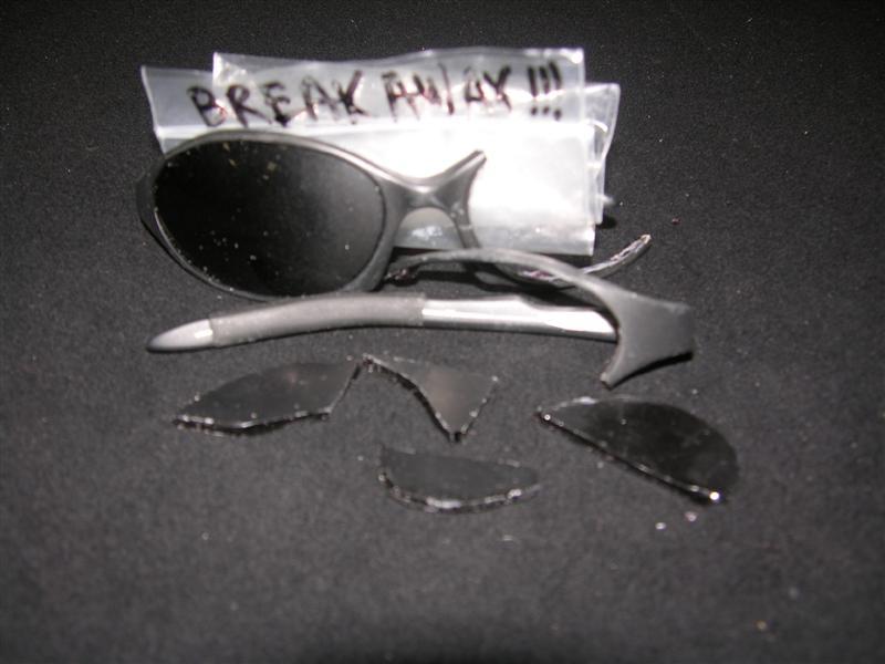 Terminator 3: Rise of the Machines (2003) - Breakaway Sunglasses worn by Arnold Schwarzenegger in the finale of the film where he fights the female terminator. In 6 pieces in plastic bag labeled “Breakaway!!!” (6" x 3")