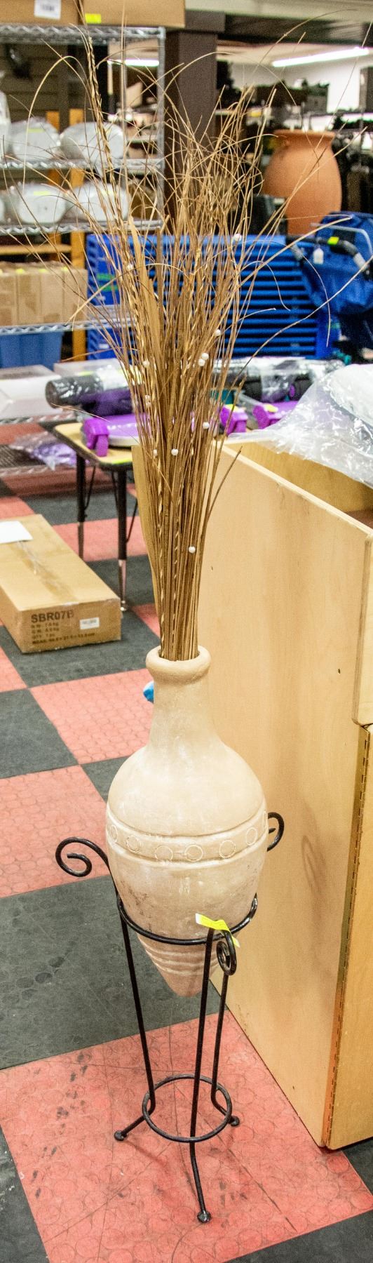 ON DECORATIVE BLACK METAL STAND WITH FOLIAGE (68"-TALL IN TOTAL)