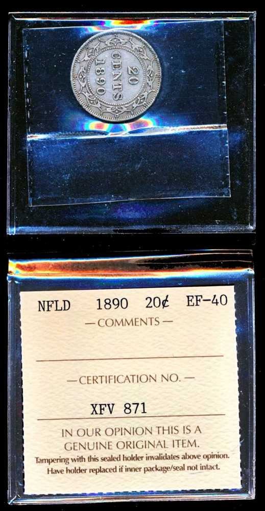 TERRE-NEUVE - 20 cents 1890 EF-40 ICCS