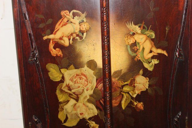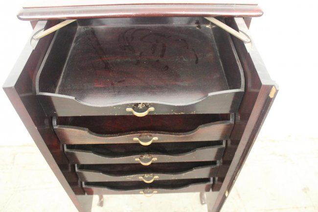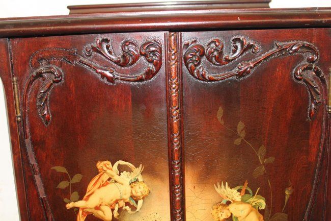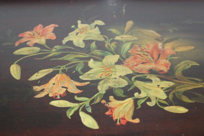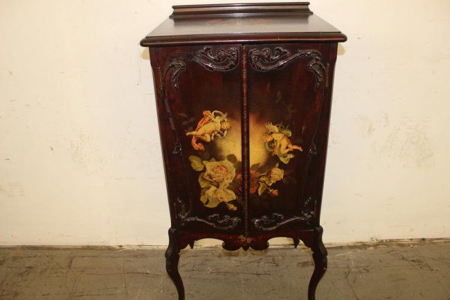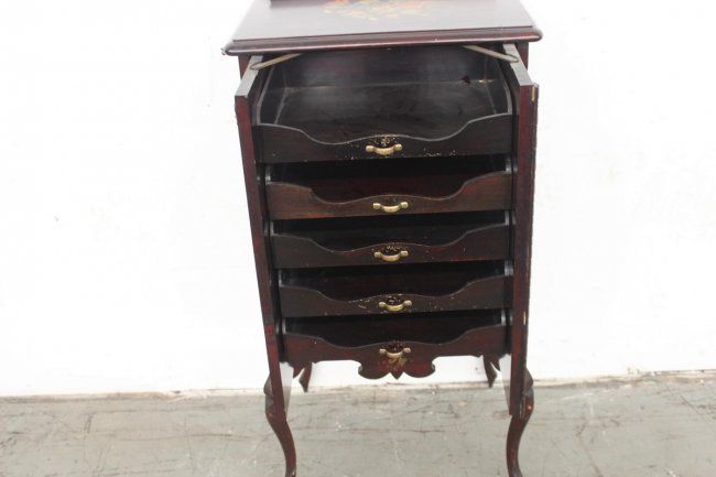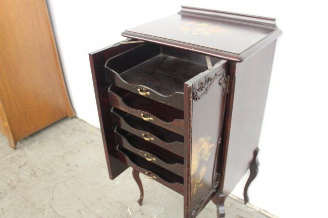 TERRIFIC HAND-PAINTED MUSIC CABINET - VERY GOOD CONDITION W/ 6 PULLOUT DRAWERS W/ ORNATE BRASS PULLS - GREAT CABINET - 43 X 21 X 16