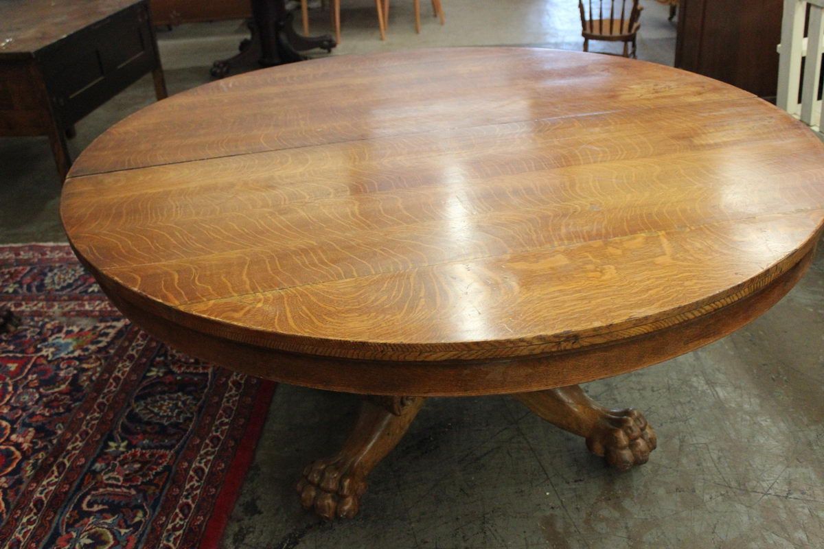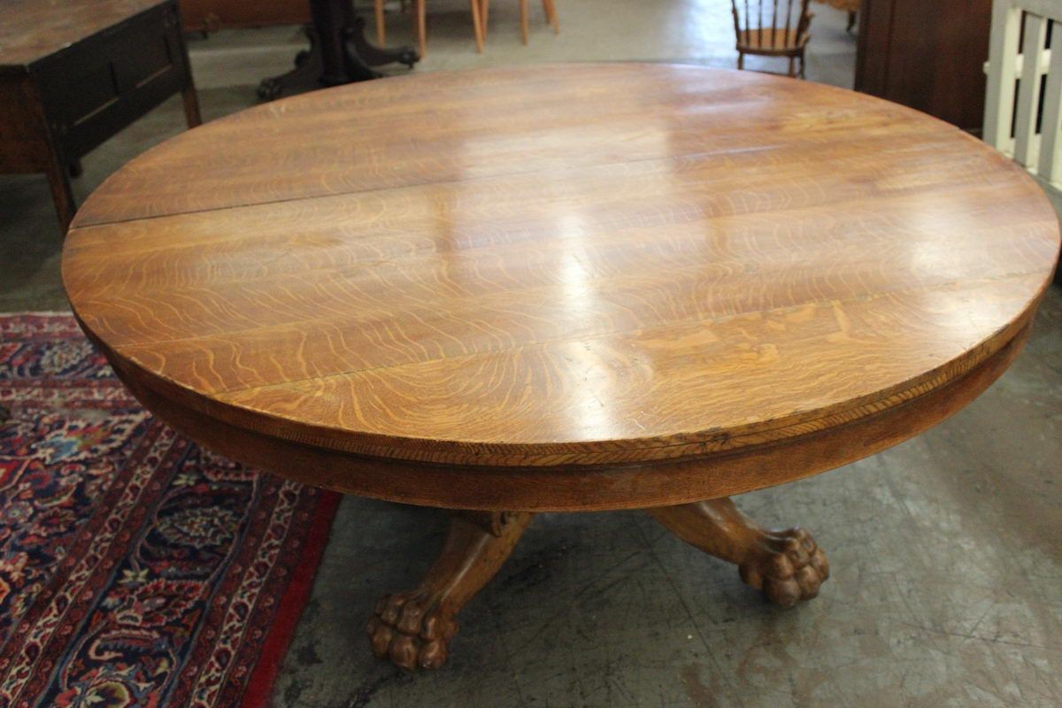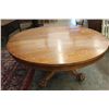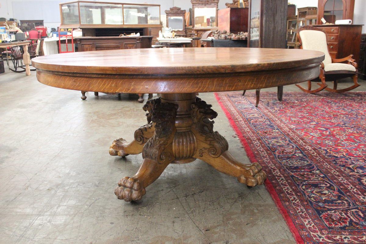 TERRIFIC ROUND OAK TABLE - MASSIVE 66" BASE - SOLID W/ GREAT LION AND FLUTED BASE