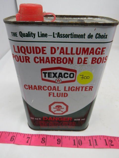 TEXACO CAMPTEX WHITE NAPTHA FOR CAMP STOVES, (TEXACO CHARCOAL LIGHTER FLUID-3/4 FULL, TEXACO NAPTHA-