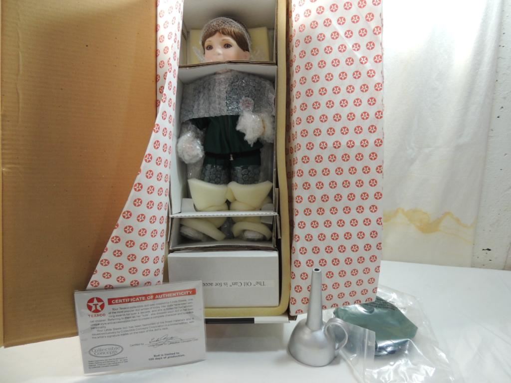 BUD THE GAS STATION ATTENDANT, TEXACO COLLECTIBLE DOLL, LIMITED EDITION, COA INCLUDED BUD BY LINDA STEELE LIMITED EDITION COLLECTIBLE CONCEPTS AS SHOWN SEE PHOTO FOR MORE DETAILS.