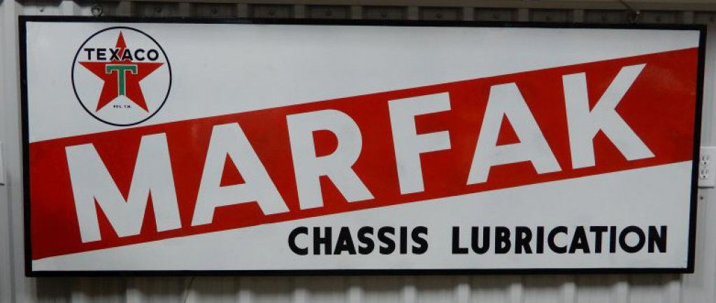 TEXACO MARFAK CHASSIS LUBRICATION SSP SIGN TILE STYLE FRAME- WOOD BACKING - TOUCH UP- 72" X 27" LOCATION: LOWER RIGHT
