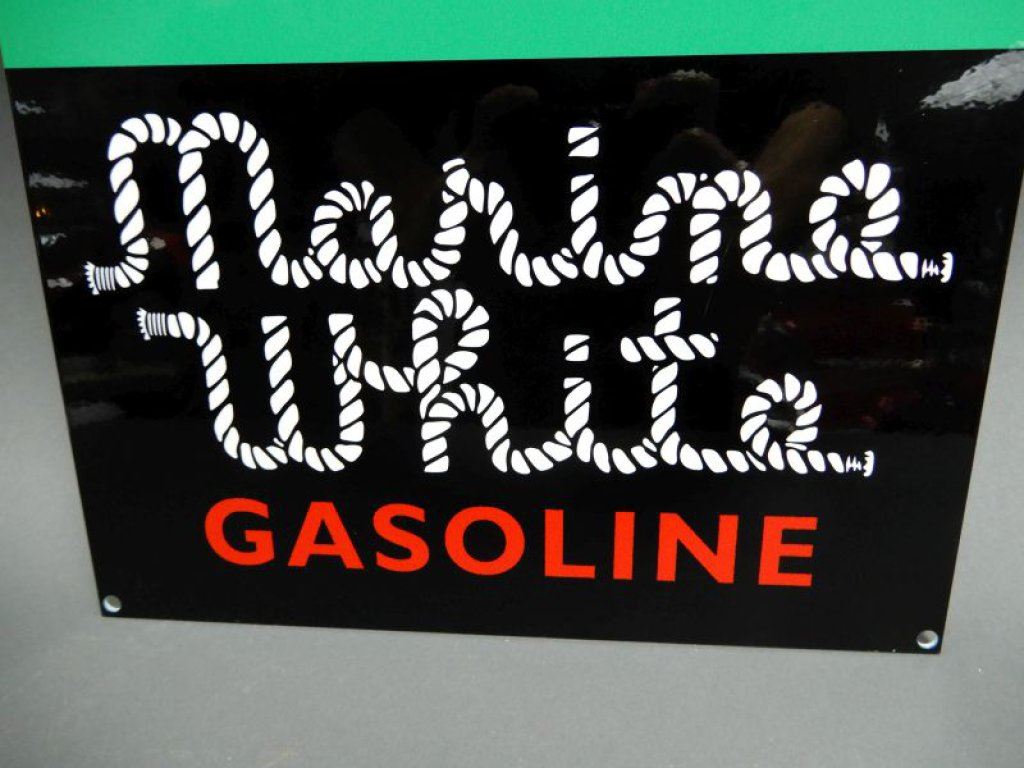 TEXACO MARINE WHITE GASOLINE SSP SIGN - REPRO SURFACE SCRATCHES - 18" X 12" LOCATION: LOWER RIGHT