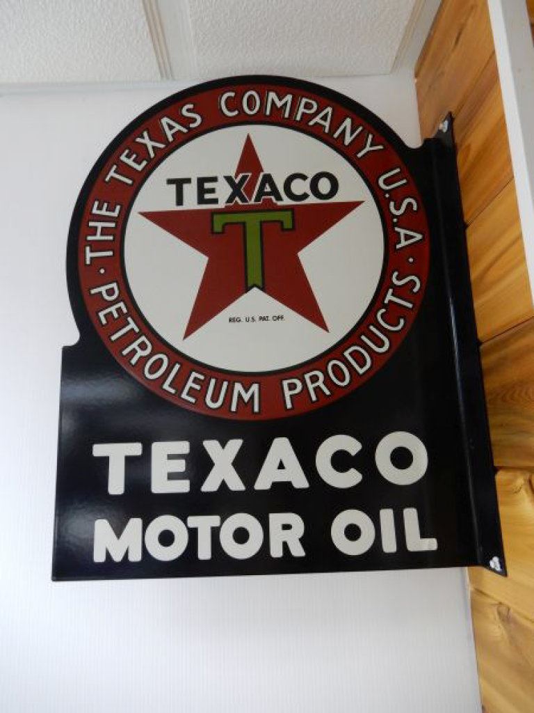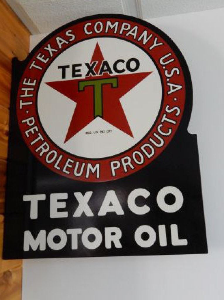 TEXACO MOTOR OIL PORC FLANGE 23" X 17 1/2" - OLDER REPRO LOCATION: LOWER RIGHT