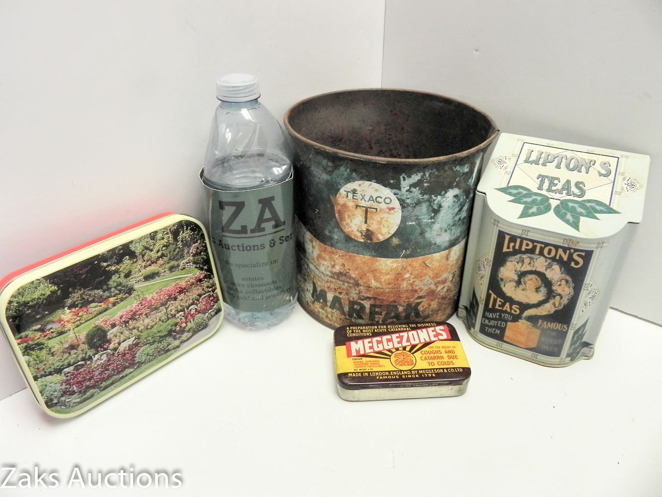 TEXACO TIN WITH LIPTON'S TEA AND BUTCHART GARDENS TINS