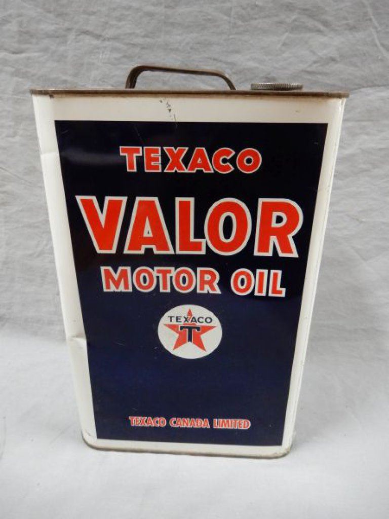 TEXACO VALOR MOTOR OIL 2 IMP. GAL. CAN CORRECT LID - SOME WEAR LOCATION: UPPER LEFT