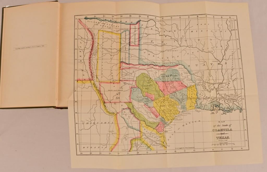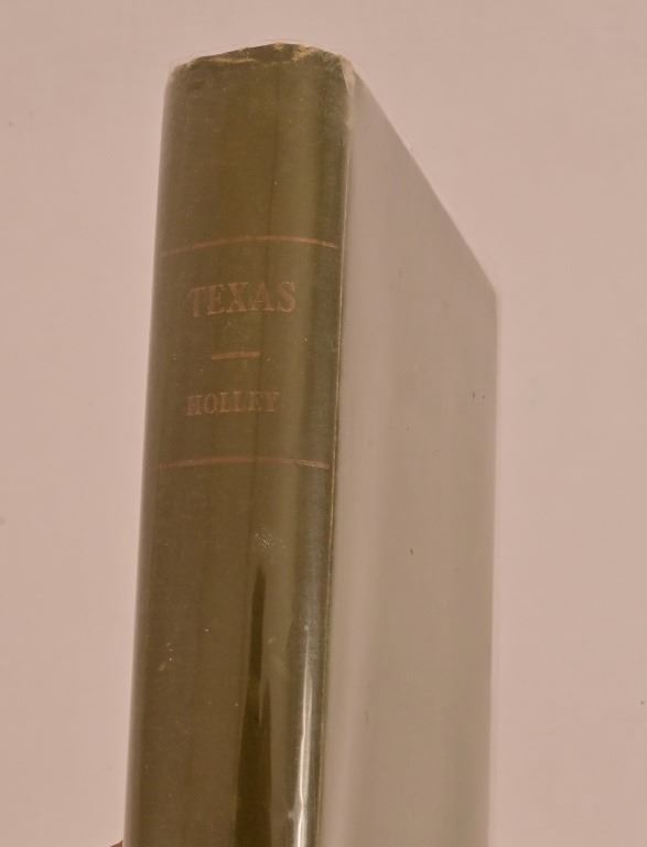 1836. Mary Austin Holley (1784-1846) cousin of Stephen F. Austin. This book was published in 1836 (printed in May & available for sale to the public by November 1836, making it the first book published in the Republic of Texas. Map is present, but believed to be a replacement. Book is original otherwise.
