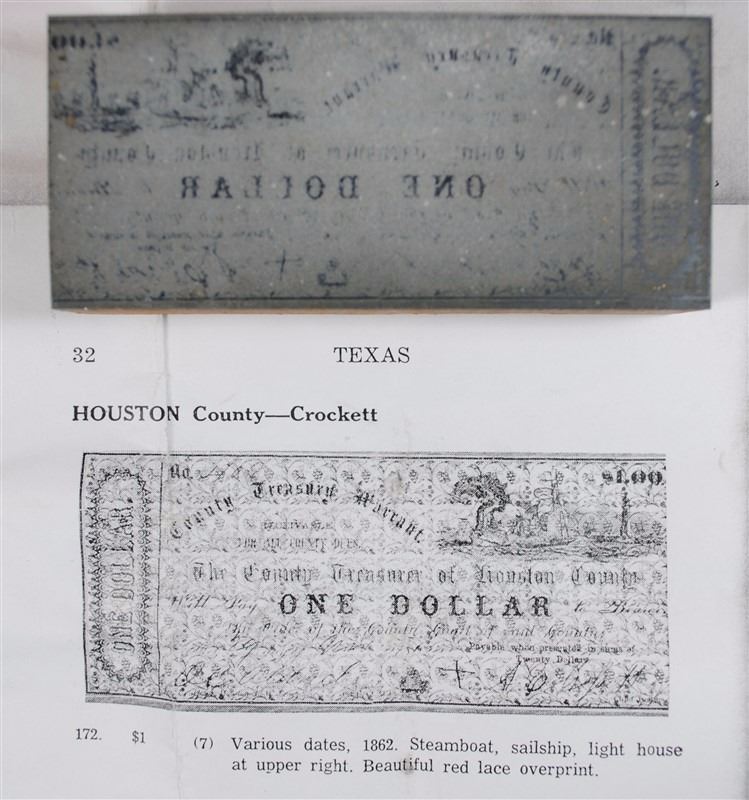 AS REFERENCED IN CONFEDERATE COUNTY NOTES BOOK, HOUSTON COUNTY (CROCKETT) TREASURY BEARER NOTE, ESTIMATE $200 - $300.