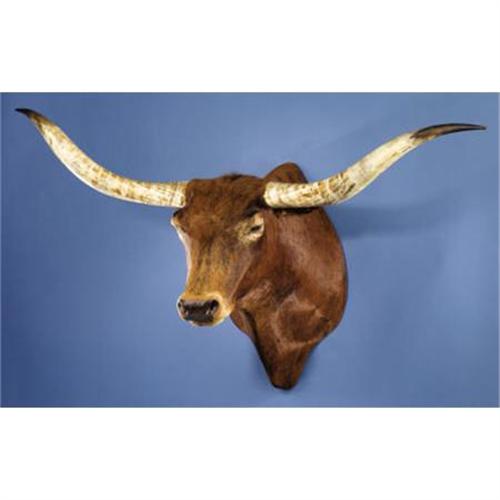 <B>TEXAS LONGHORN SHOULDER MOUNT</B></I><BR> These long-horned cattle were first brought to Texas about 200 years ago by the Spaniards and have thrived here ever since. They were in fact the first breed of cattle to prove they could survive here. This mount has huge horns that spread 68 inches across, and he measures 35 inches from the wall to the nose and 42 inches high.<BR><BR><b>Shipping:</b> Requires 3rd Party Shipping (<a target="_blank" href="http://www.heritageauctions.com/common/shipping.php">view shipping information</a>)