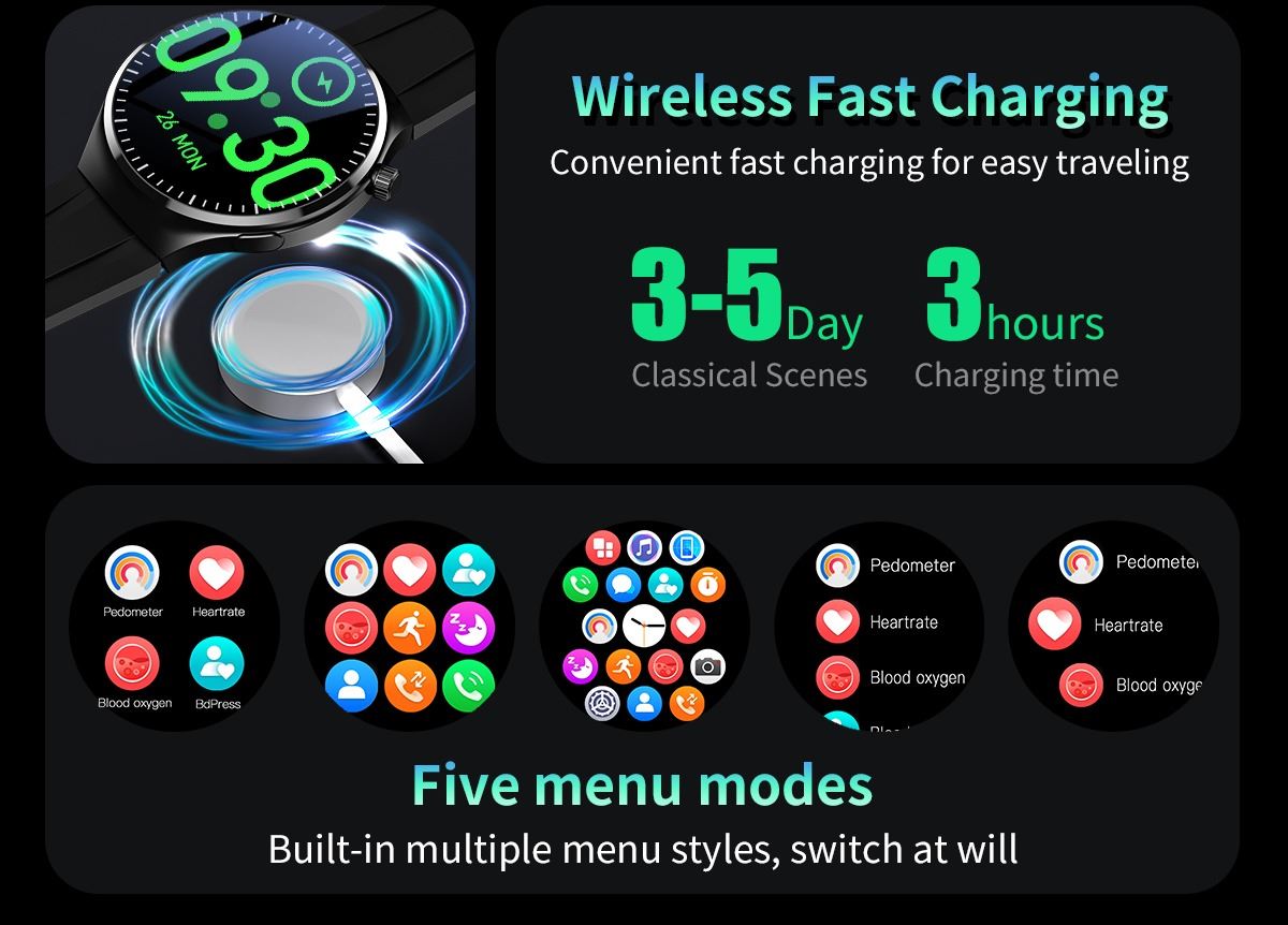 SLEEP TRACKING, BLUETOOTH CALLING, SPORTS MODELS, 1.5" SCREEN,STAY CONNECTED: RECEIVE CALLS, TEXTS AND NOTIFICATIONS, HEALTH AND FITNESS: TRACK YOUR PROGRESS WITH MULTI-SPORT MODES, HEART RATE MONITORING, BLOOD PRESSURE MONITORING, SLEEP ANALYSIS AND MORE,CHOOSE FROM A WIDE VARIETY OF WATCH FACES AND CUSTOMIZE THE MENU STYLE TO MATCH YOUR UNIQUE TASTE,CONTROL MUSIC PLAYBACK, TAKE PHOTOS REMOTELY, SET REMINDERS AND ACCESS WEATHER UPDATES