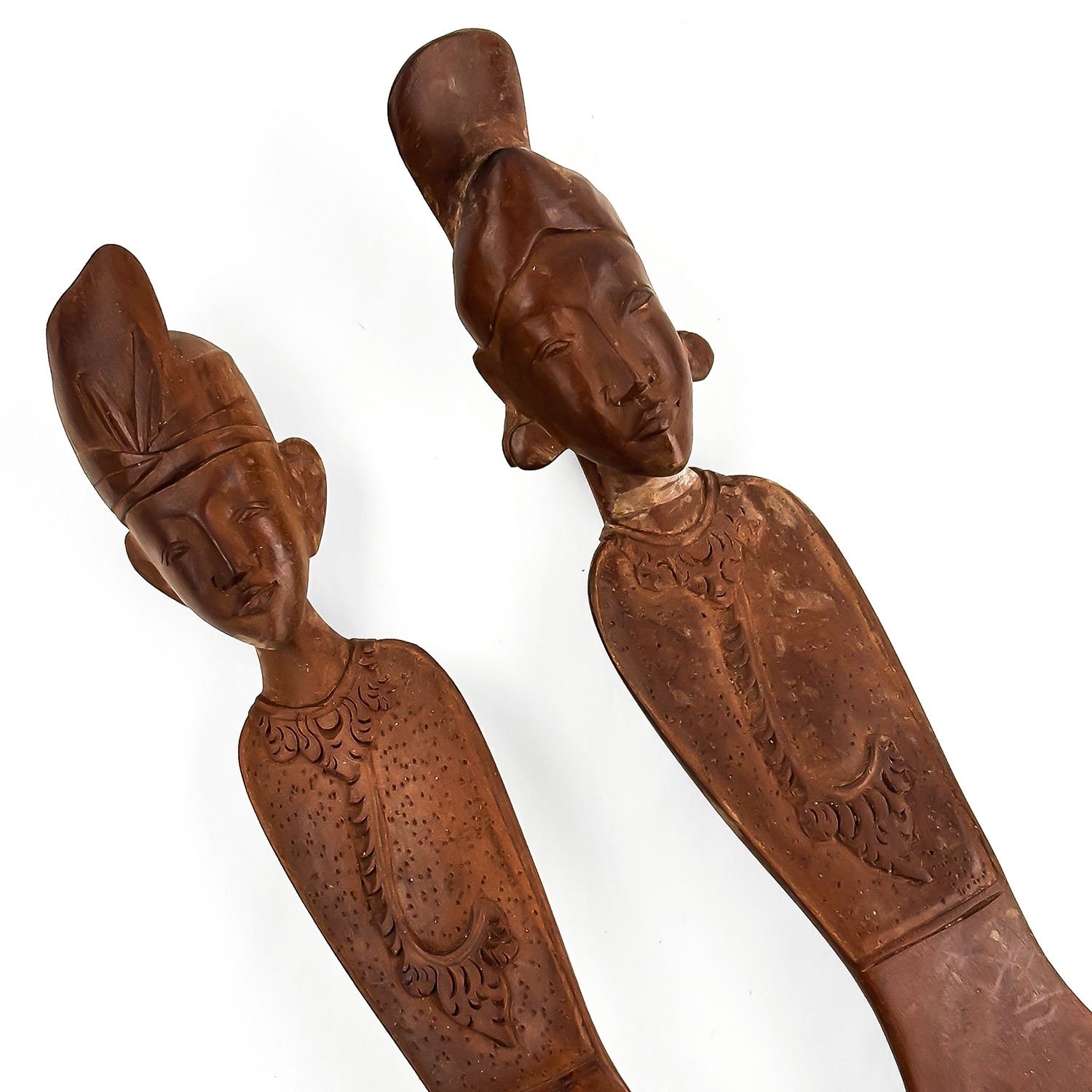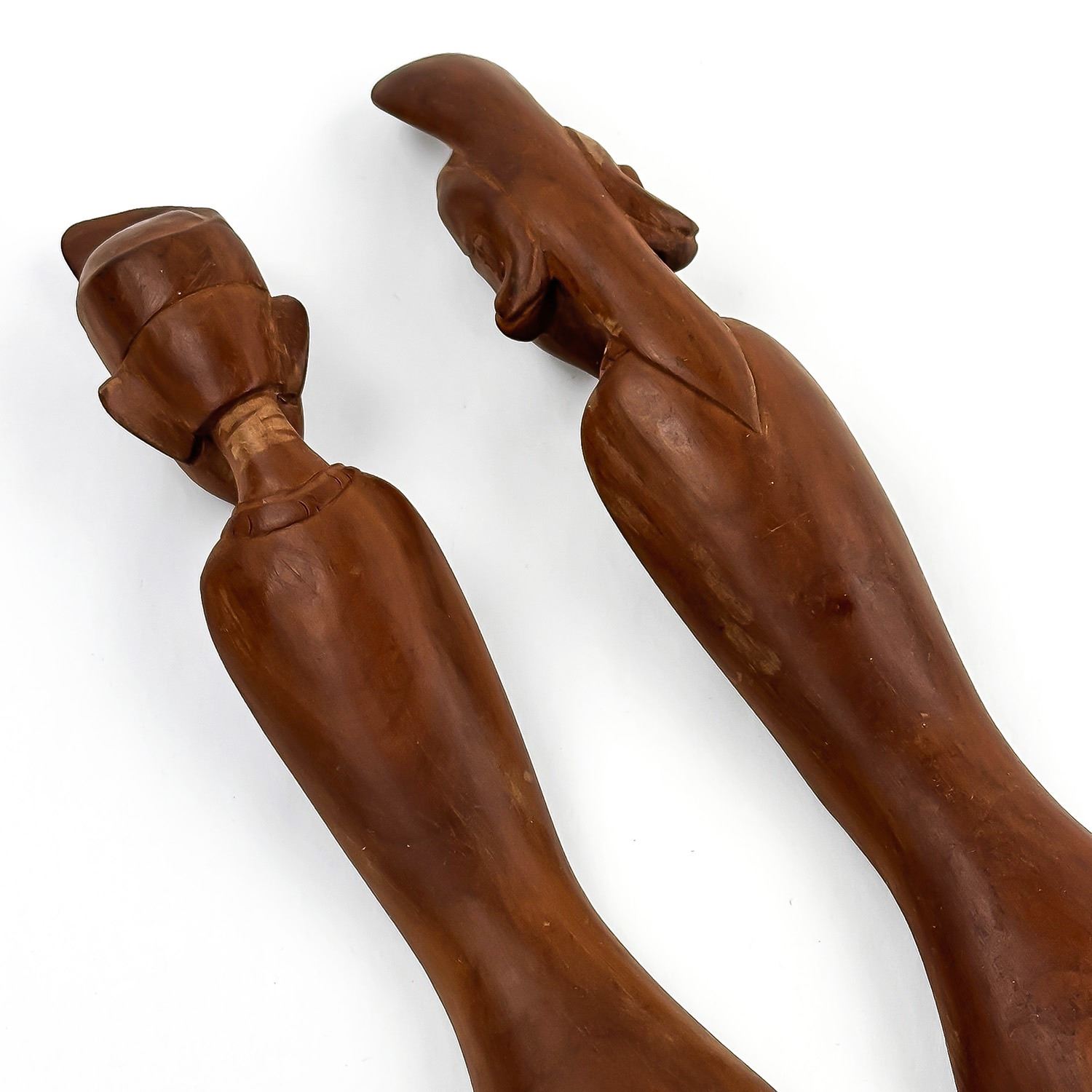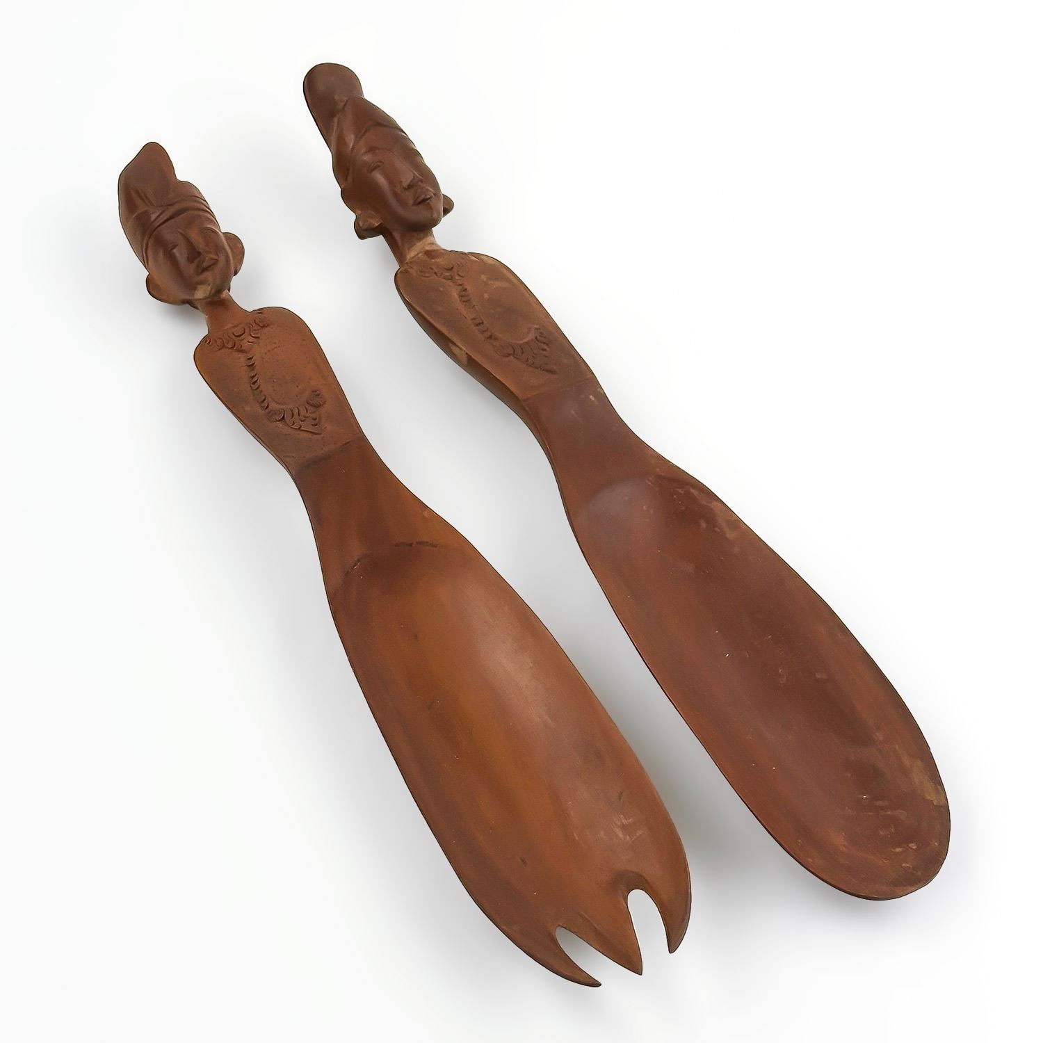 #8983 - HAND CARVED FIGURAL SPOON & FORK. THEY MEASURE: 14” (36 CM) LONG, 2.5” (6.5 CM) WIDE