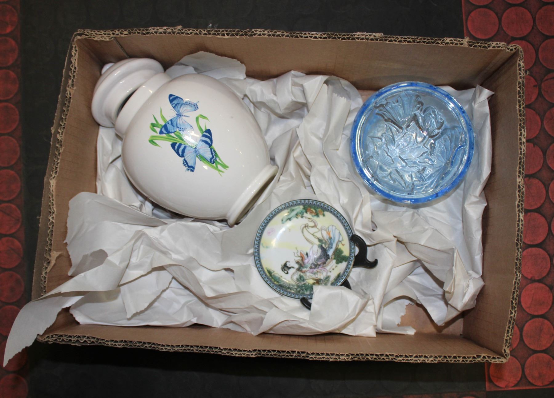 LIDDED TRINKET DISH + ORIENTAL THEMED MINI PLATE WITH PLATE STAND HOLDER **ALL ITEMS MUST BE REMOVED BY 5PM SATURDAY, MAY 17TH 2025. ALL REMAINING ITEMS WILL BE SUBJECT TO A $6.00 PER DAY STORAGE CHARGE. ANY ITEMS REMAINING AFTER MONDAY, JUNE 2ND 2025 WILL BE CONSIDERED FORFEITED. NO REFUNDS WILL BE ISSUED FOR FORFEITED ITEMS. TO SCHEDULE A PICK UP APPOINTMENT CLICK HERE