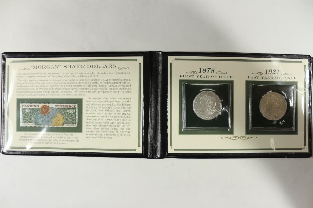 UNC 1878-S AND UNC 1921 MORGAN SILVER DOLLARS IN FOLIO