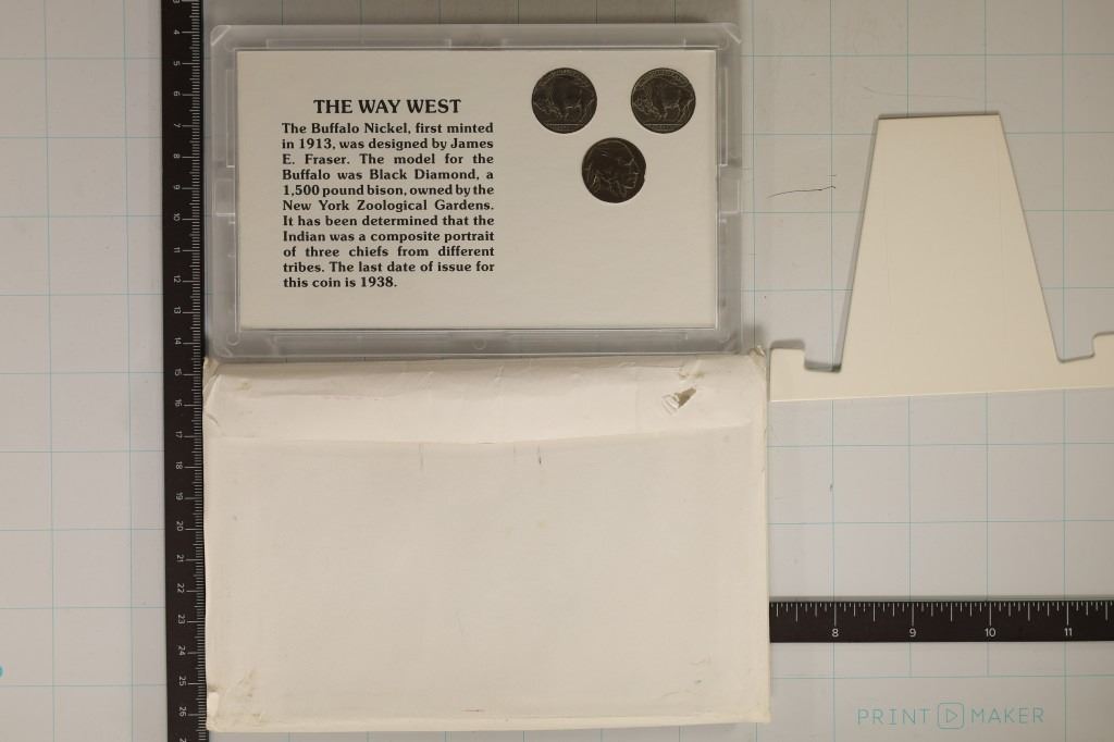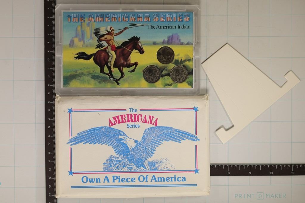 FEATURING: 2-1935 BUFFALO NICKEL AND ONE NO DATE BUFFALO NICKEL IN HARD PLASTIC CASE WITH CARDBOARD STAND AND ENVELOPE