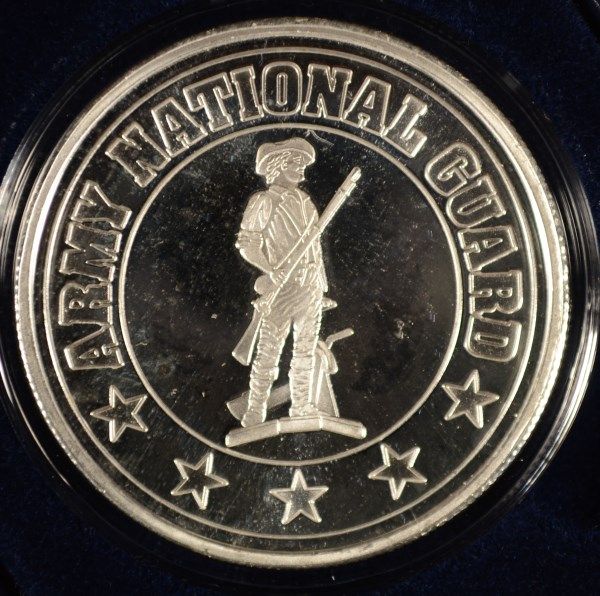 THE ARMY NATIONAL GUARD FEATURED ON A ONE OUNCE .999 SILVER ART ROUND