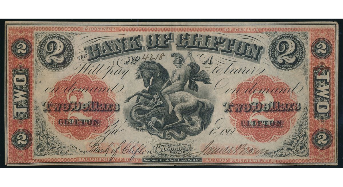 THE BANK OF CLIFTON. $2.00. Sept. 1, 1861. CH-125-12-12. No. 4218/A. Signed James Brown. Extra Fine.