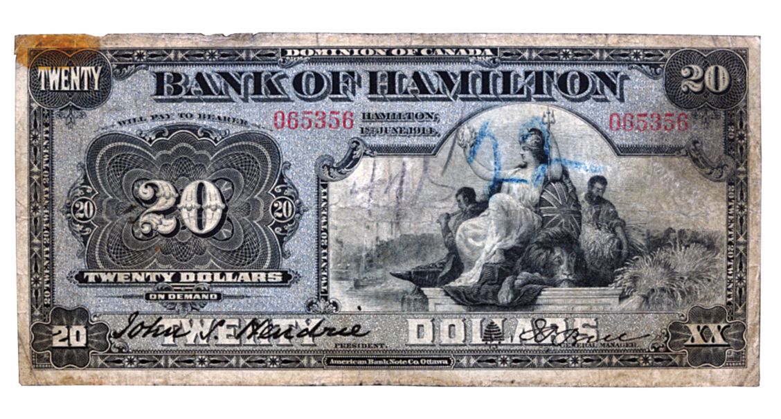 THE BANK OF HAMILTON. $20.00. June 1, 1914. CH-345- 20-18. No. 065356. PMG graded Fine-12.