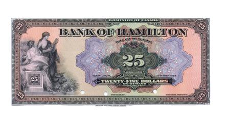 THE BANK OF HAMILTON. $25.00. March 1, 1922. CH-345-22-06P. A full colour Face Proof on thin paper, trimmed to the edges of the tint. Pristine.