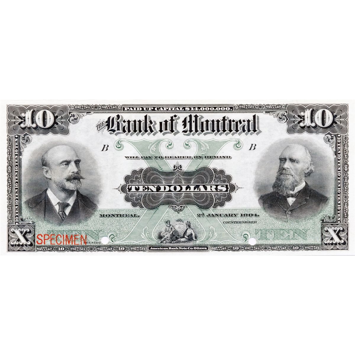 THE BANK OF MONTREAL. $10.00. Jan. 2, 1904. CH-505-48- 04S. A Specimen. PCGS graded UNC-64PPQ.