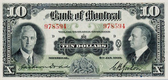 THE BANK OF MONTREAL. $10.00. Jan. 2, 1935. CH-505-60-04. No. 978594/D. Signed Dodds-Gordon. BCS graded Extra Fine-40.