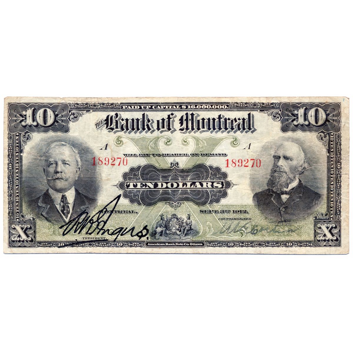 THE BANK OF MONTREAL. $10.00. Sept. 3, 1912. CH-505-52- 04. No. 189270. PMG graded Very Fine-20.