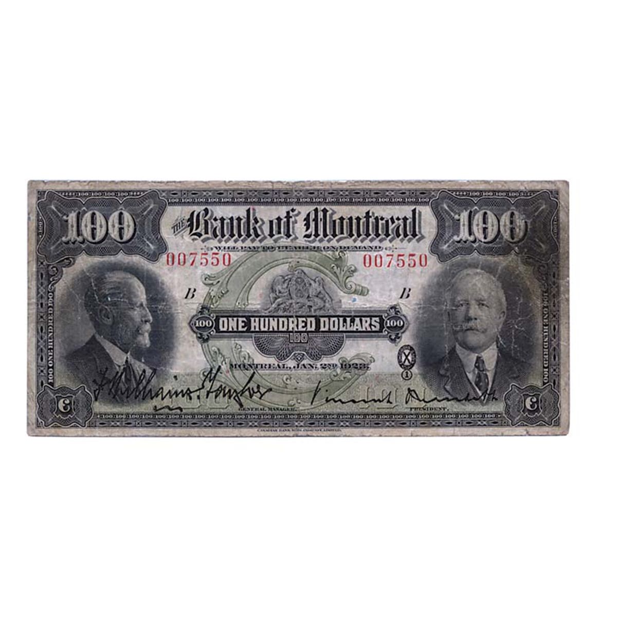 THE BANK OF MONTREAL. $100.00. Jan. 2, 1923. CH-505-56- 10. No. 007550/B. PMG graded Fine-12.