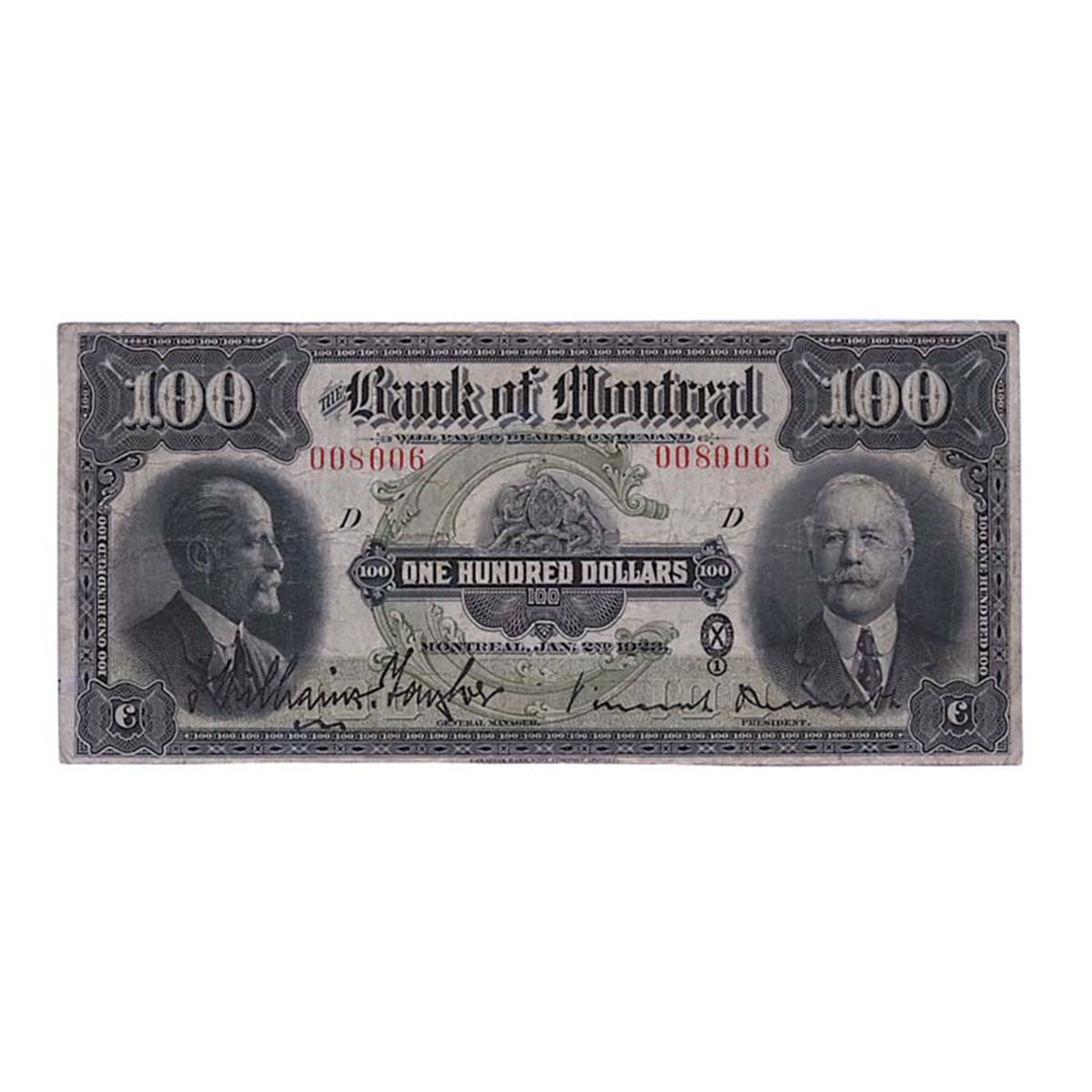 THE BANK OF MONTREAL. $100.00. Jan. 2, 1923. CH-505-56- 10. No. 008006/D. PMG graded Very Fine-20.