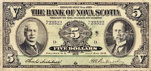 THE BANK OF NOVA SCOTIA. $5.00. 1918. CH-550-30-02. No. 723522/D. PMG graded VG-10.