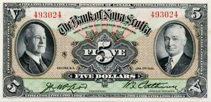 THE BANK OF NOVA SCOTIA. $5.00. Jan. 2, 1935. CH-550-36-02. No. 493024. CCCS graded Gem UNC-66.