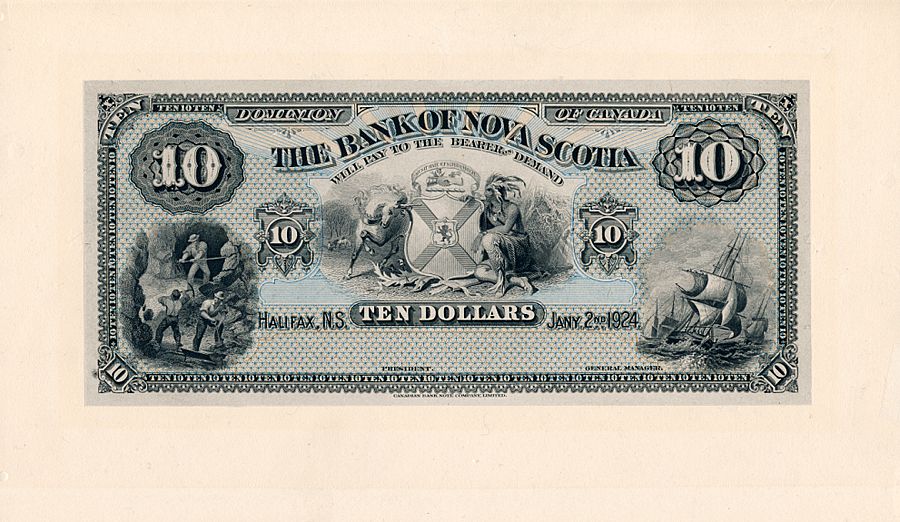$10.00. Jan. 2, 1924. CH-550-18-18P. Full colour Face and Back Proofs on thin paper, attached to larger (9” X 5”) approval cards. Two choice Proofs.
