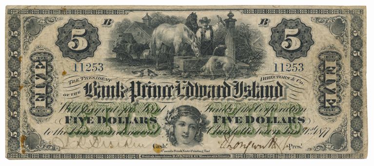 $5.00. Jan. 1, 1877. CH-600-12-12. No. 11253/B. Signed J.R. Brecken/J. Longworth. No Overprint. Unlisted in the 2013 C.P.M.S. registry. A strong Fine note.